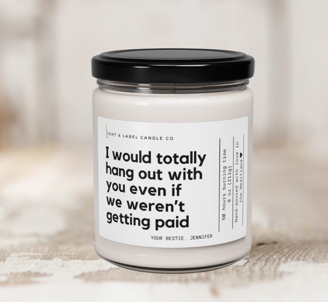 Light up laughter with this witty soy wax candle gift that says “I would totally hang out with you even if we weren’t getting paid.” The perfect gift for coworkers, work besties, or anyone who makes the 9-to-5 grind a little brighter.