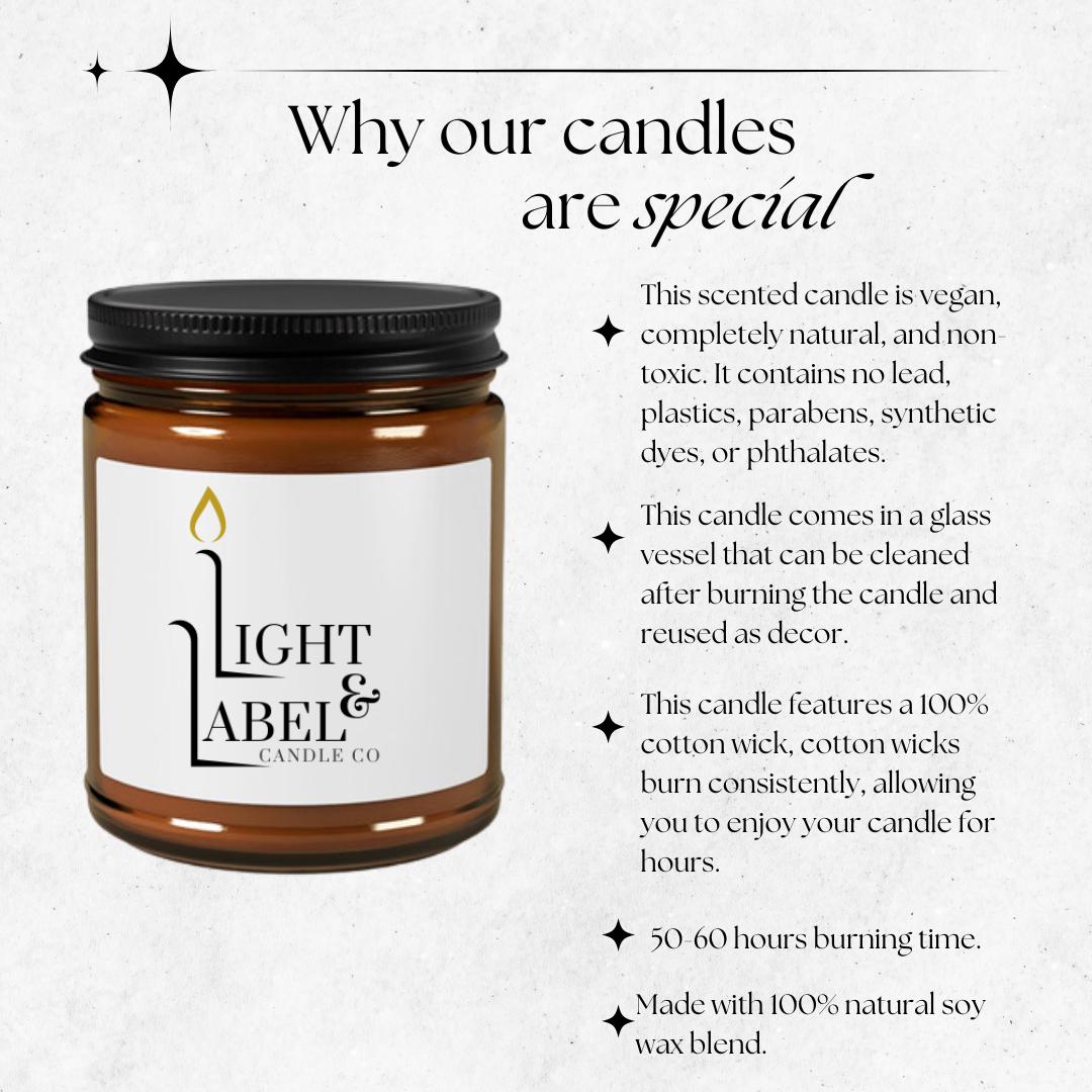 Our candles are made from soy wax 🕯️—100% natural wax derived from vegetable soybeans—as well as 100% vegan, cruelty-free, and feature a 100% cotton wick 🌿, all natural and non-toxic. 🚫