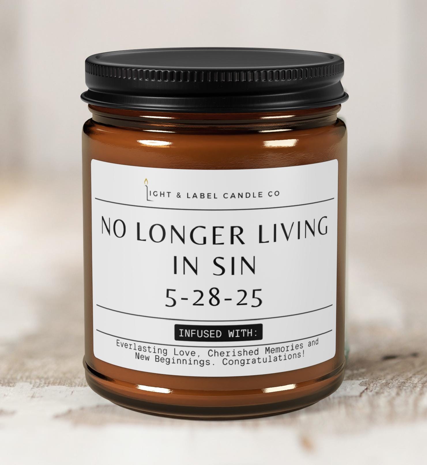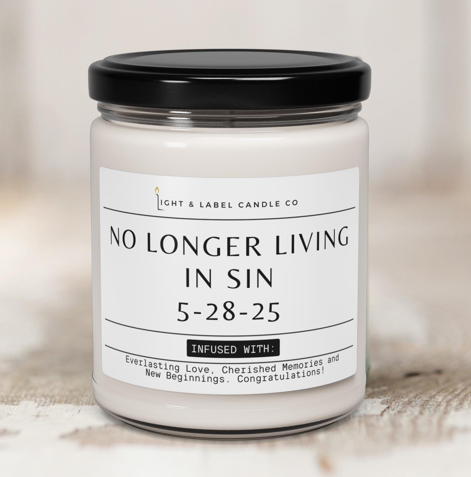 No Longer Living in Sin Candle | Wedding Gift | Personalized Wedding Gift | Anniversary Gift | Wedding Date Gift | 9 oz Soy Candle