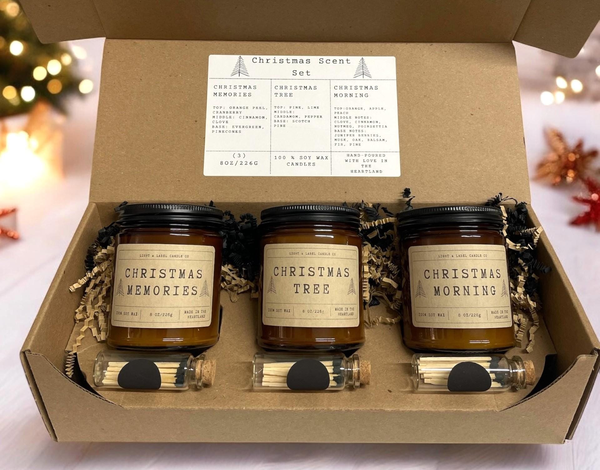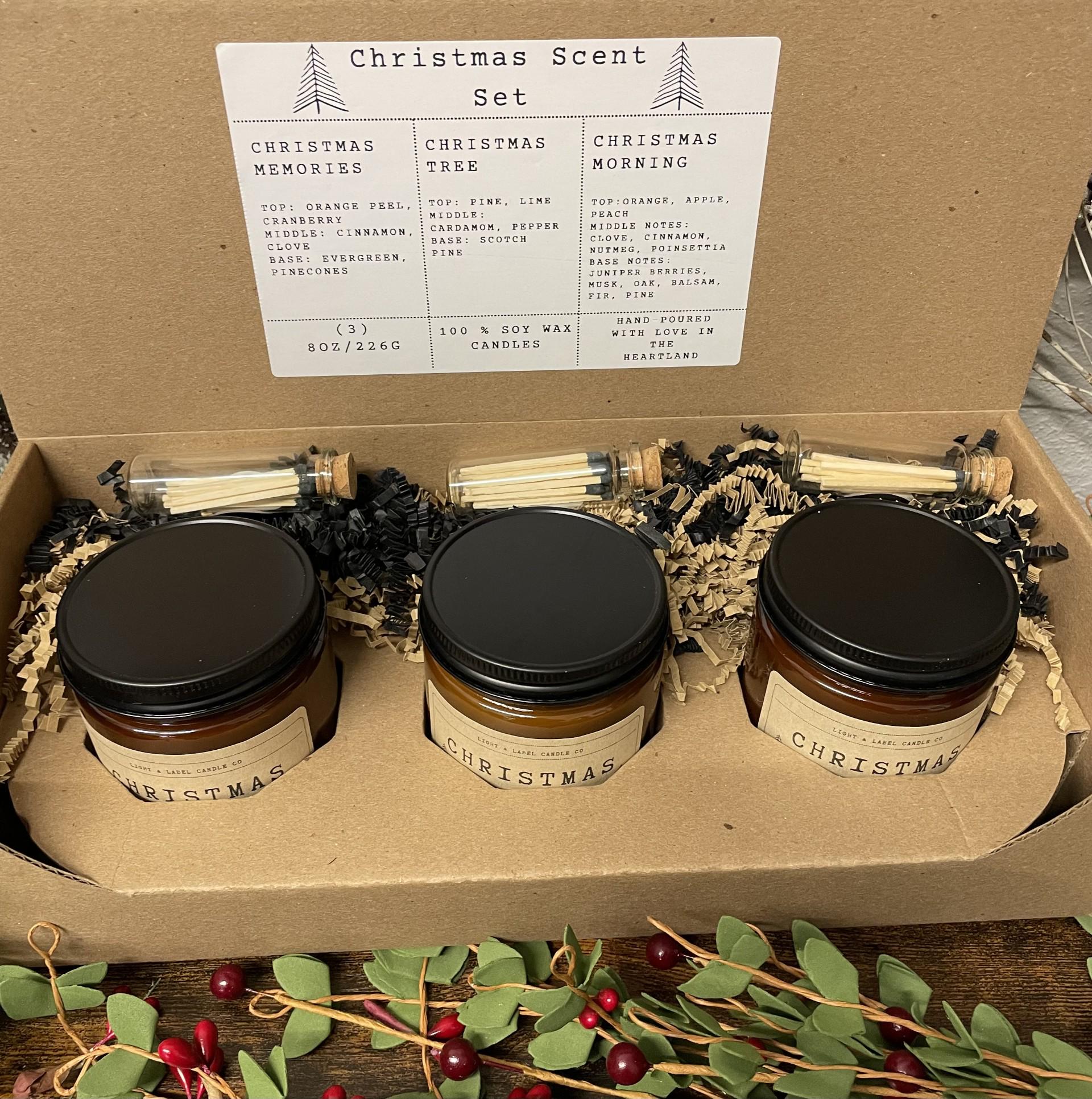 Elevate your holiday ambiance with our Christmas Scented Soy Wax Candle Gift Set, featuring three exquisite 8 oz candles. Perfect as a thoughtful gift or a personal indulgence, this trio of holiday-inspired scents will fill your home with warmth and nostalgia.