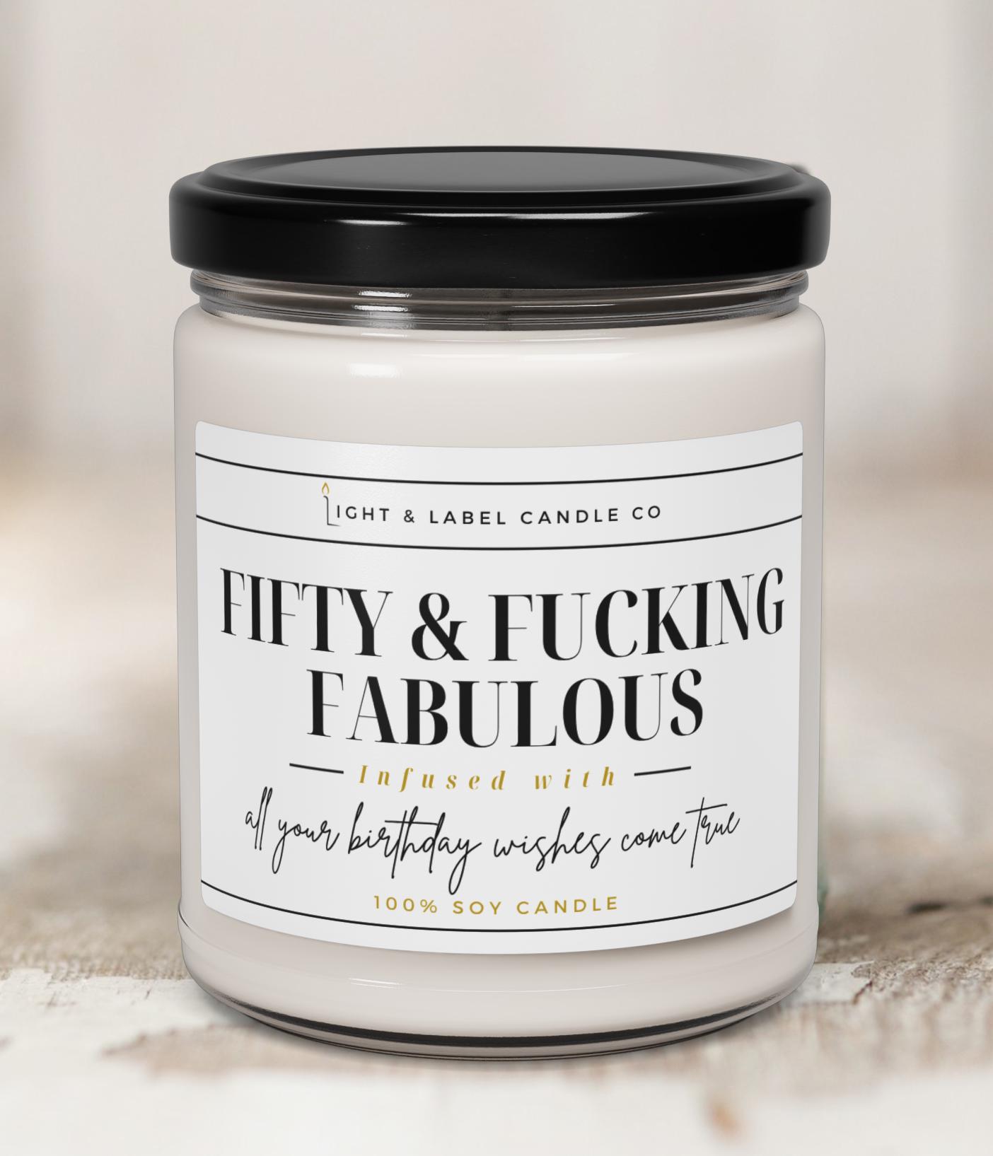 Fifty never looked (or smelled) so damn good! Our Fifty & Fucking Fabulous soy wax candle is the perfect way to celebrate five decades of strength, sass, and sparkle. This isn't just a candle—it's a vibe.