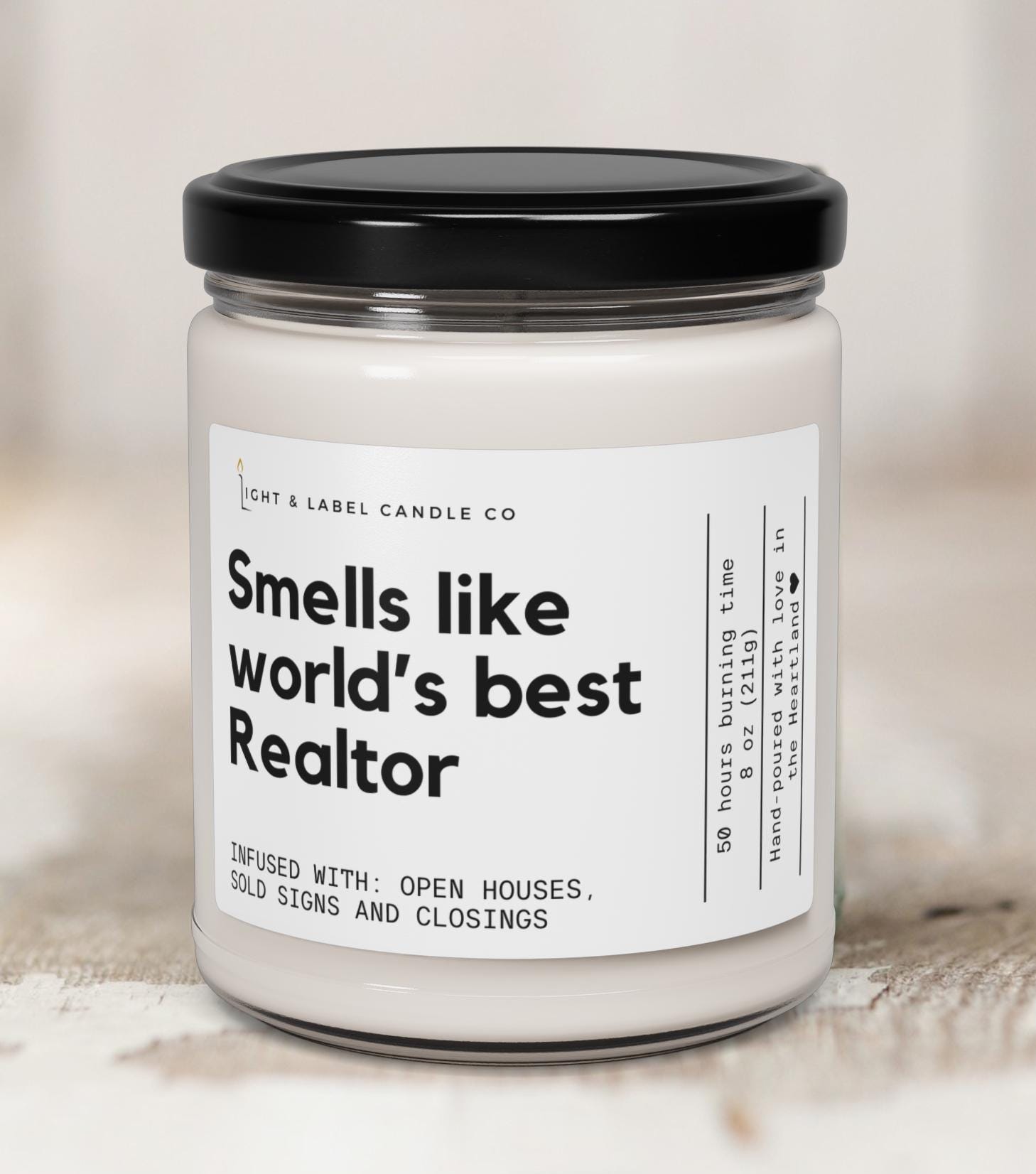 Smells Like World’s Best Realtor Soy Wax Candle – Infused with Open Houses, Sold Signs & Closings – Funny Realtor Gift – Real Estate Appreciation Candle