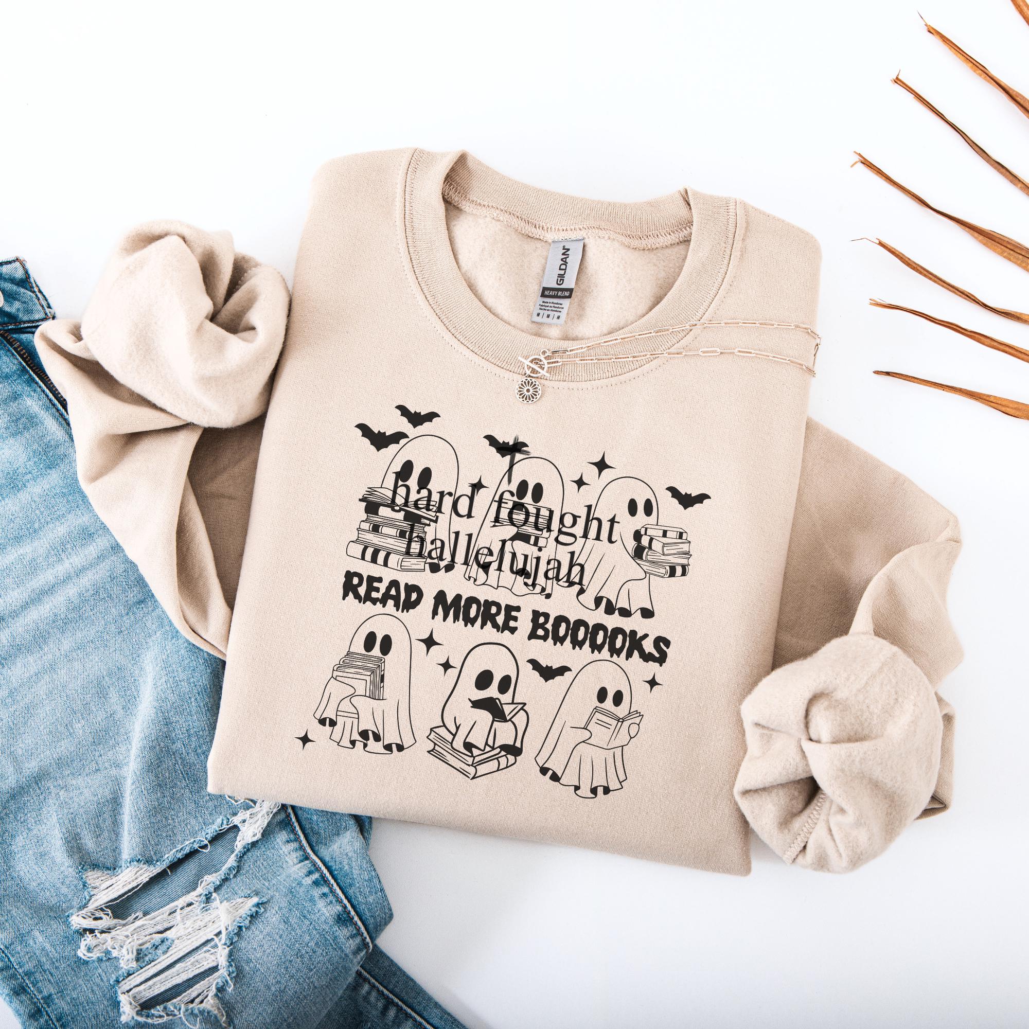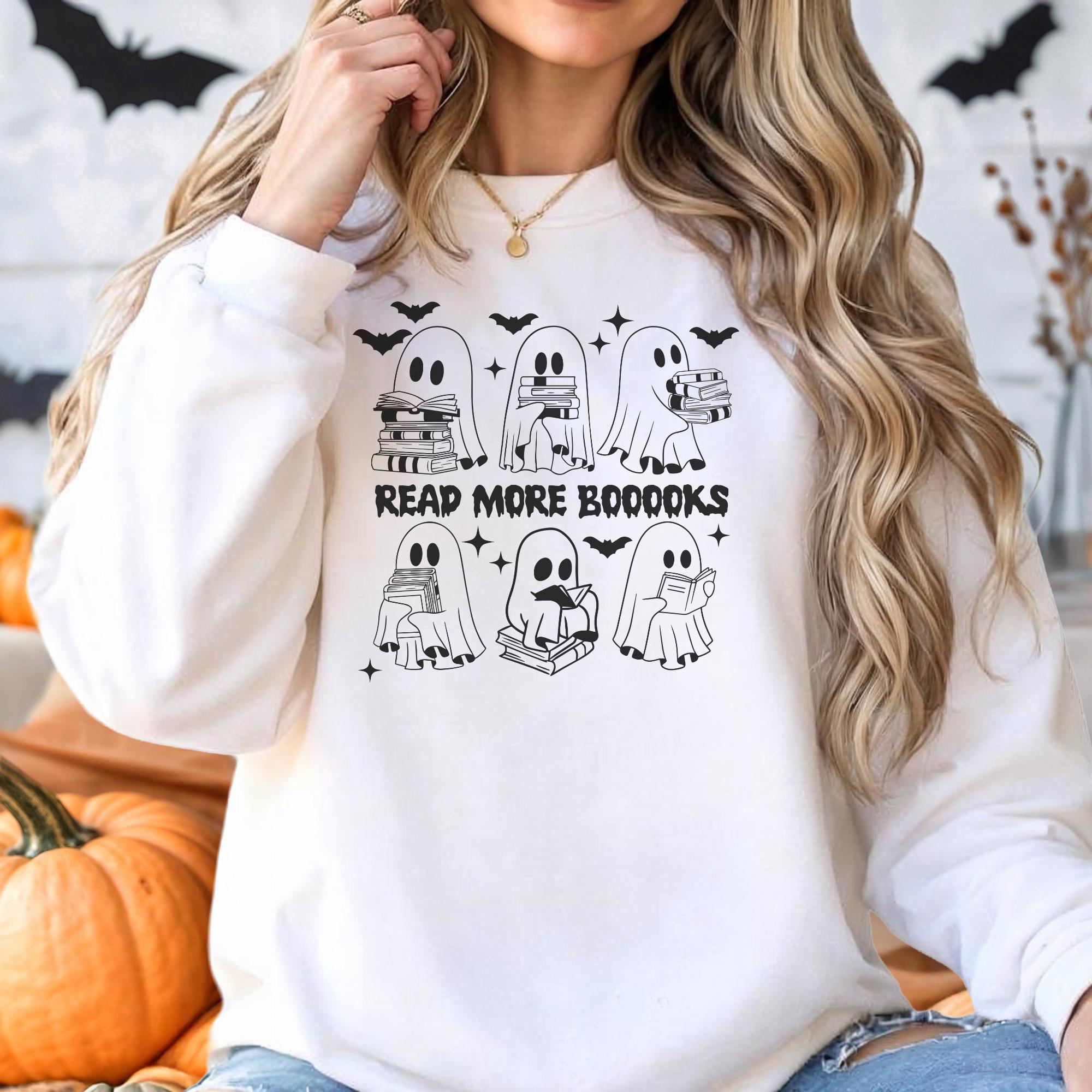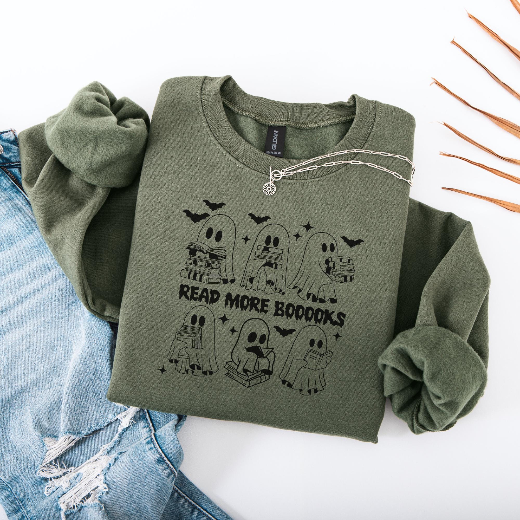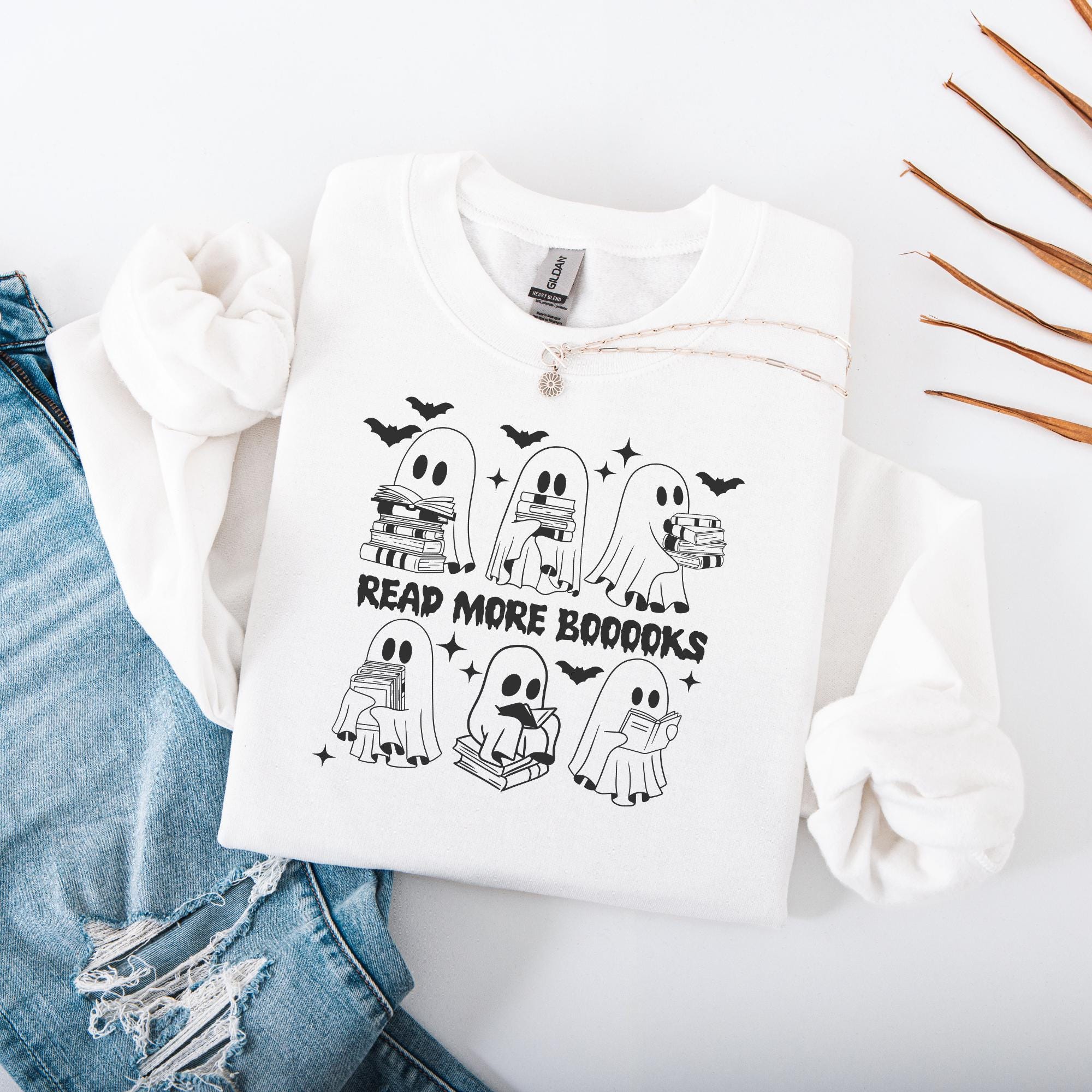 Read More Books Ghost Sweatshirt | Cute Spooky Halloween Crewneck | Cozy Book Lover Pullover