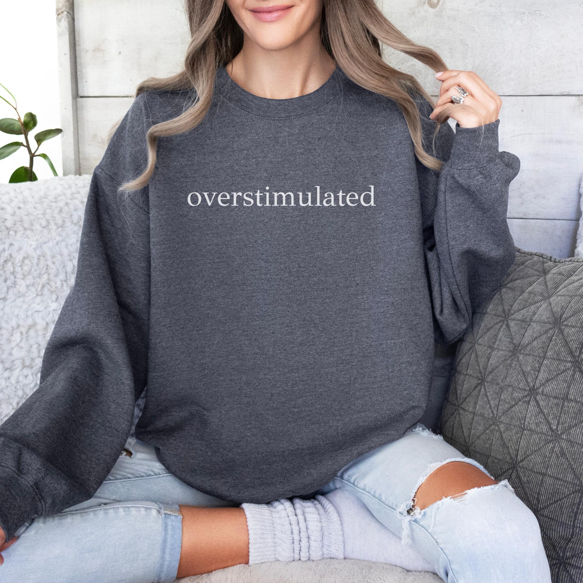 Overstimulated Sweatshirt | Minimalist Mom Life Crewneck | Cozy Pullover for Young Adults