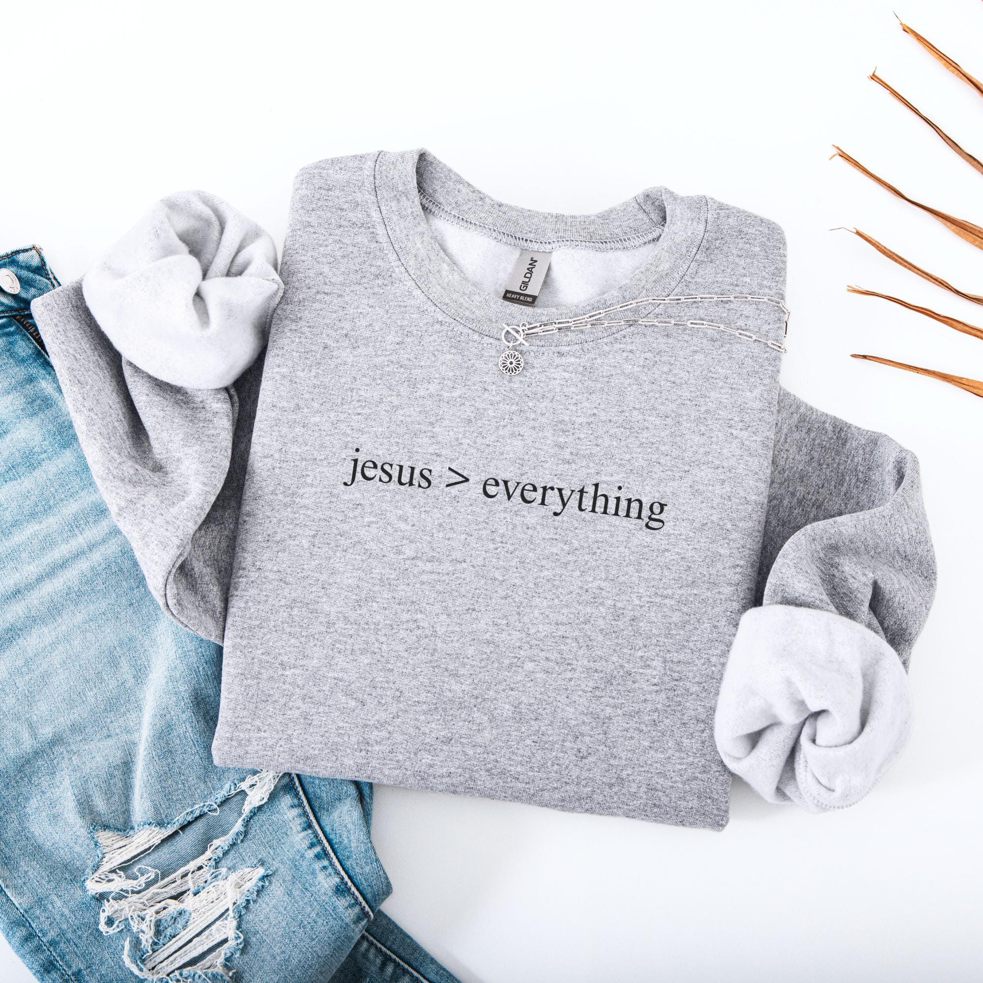 Make your faith statement simple yet bold with our “Jesus < Everything” sweatshirt. Designed with a clean, minimalist style, this sweatshirt is more than just cozy—it’s a powerful reminder of what truly matters. Whether you’re wearing it to church, Bible study, or just out and about, it’s the perfect conversation starter and expression of faith.