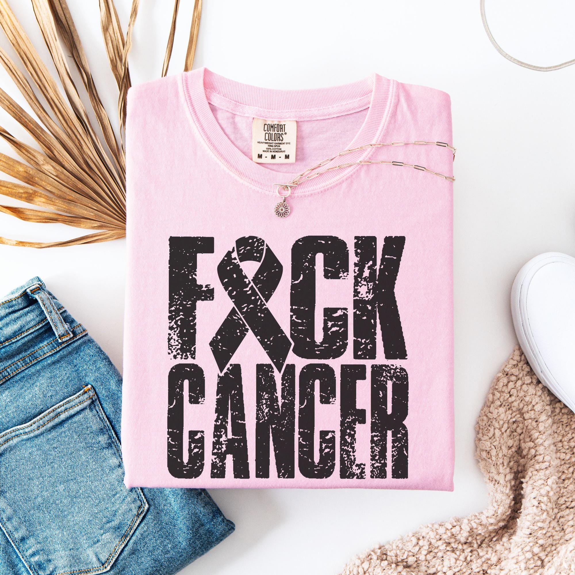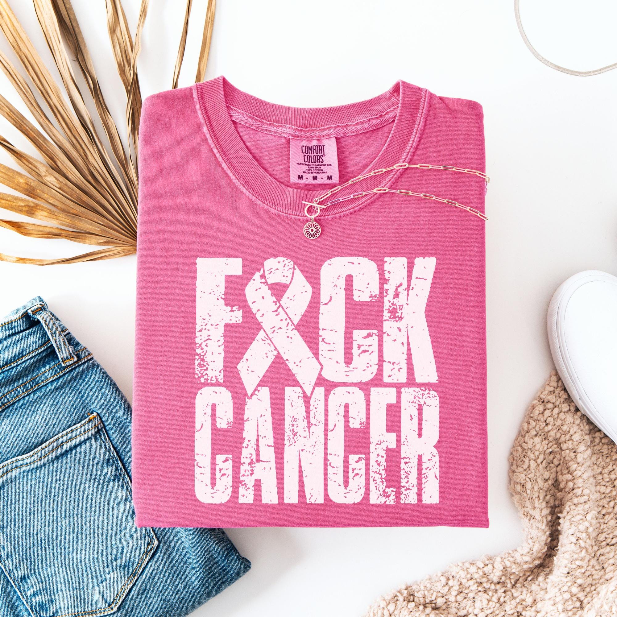 Take a stand and spread strength with our bold F*ck Cancer T-Shirt. Designed on a premium Comfort Colors tee, this shirt delivers both comfort and a powerful message of resilience. The distressed white lettering paired with the iconic pink ribbon makes it a meaningful piece for breast cancer awareness, support walks, or simply honoring fighters and survivors.