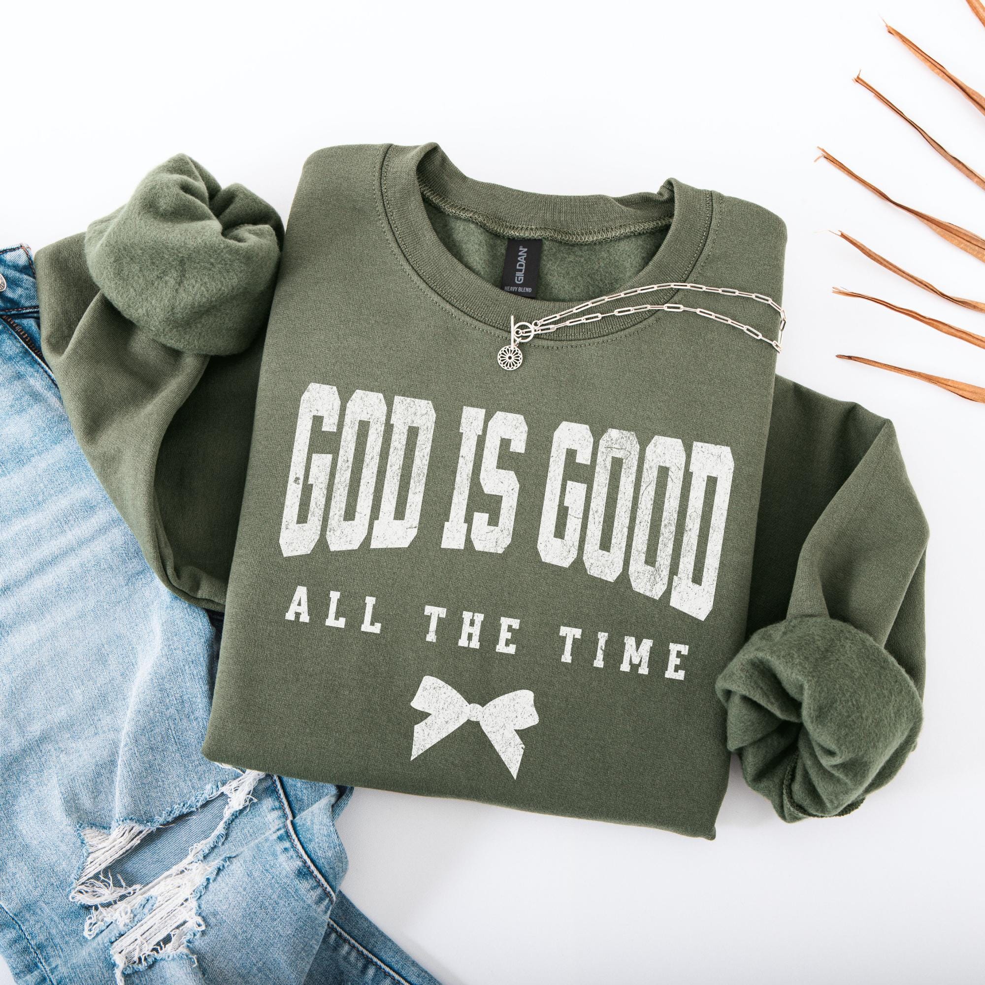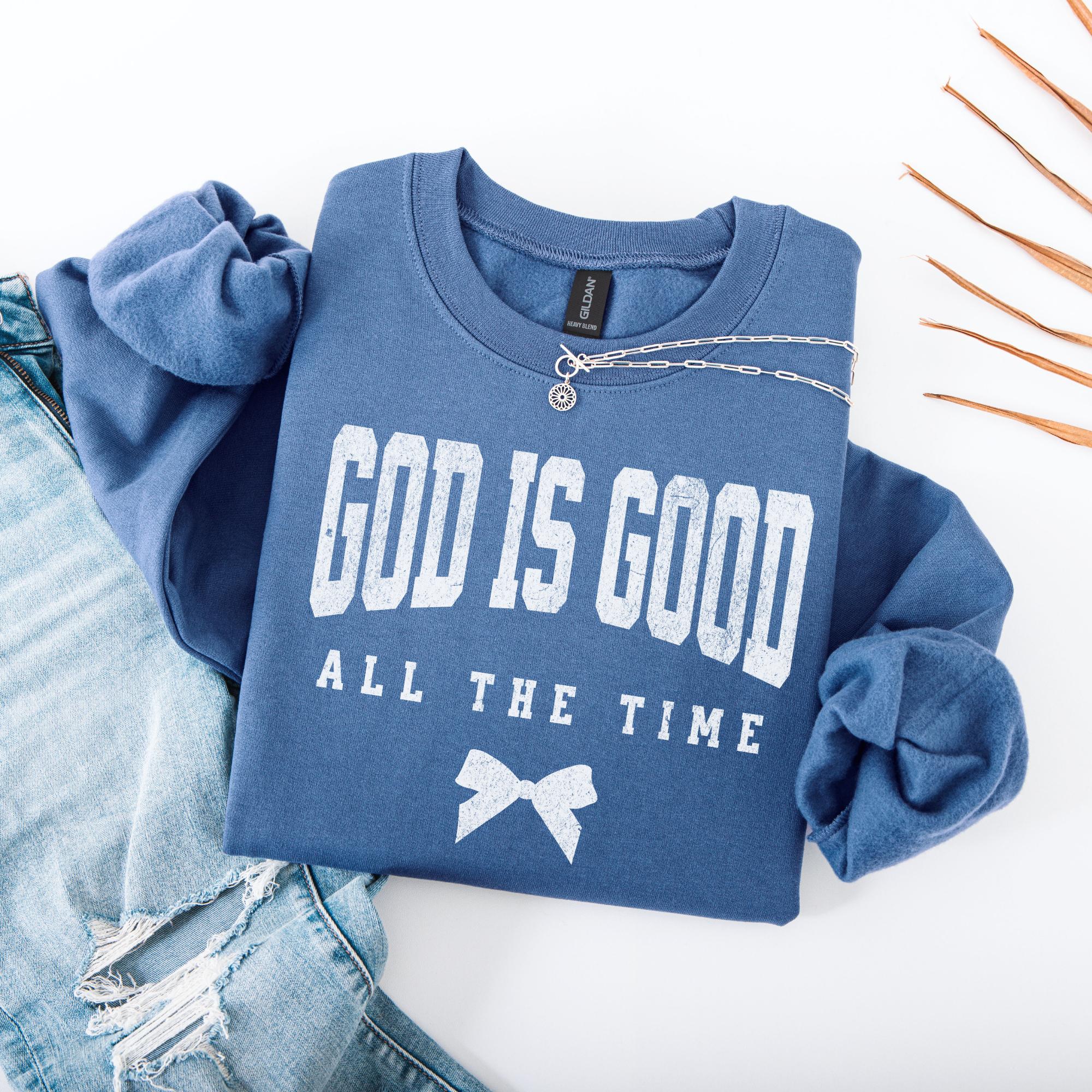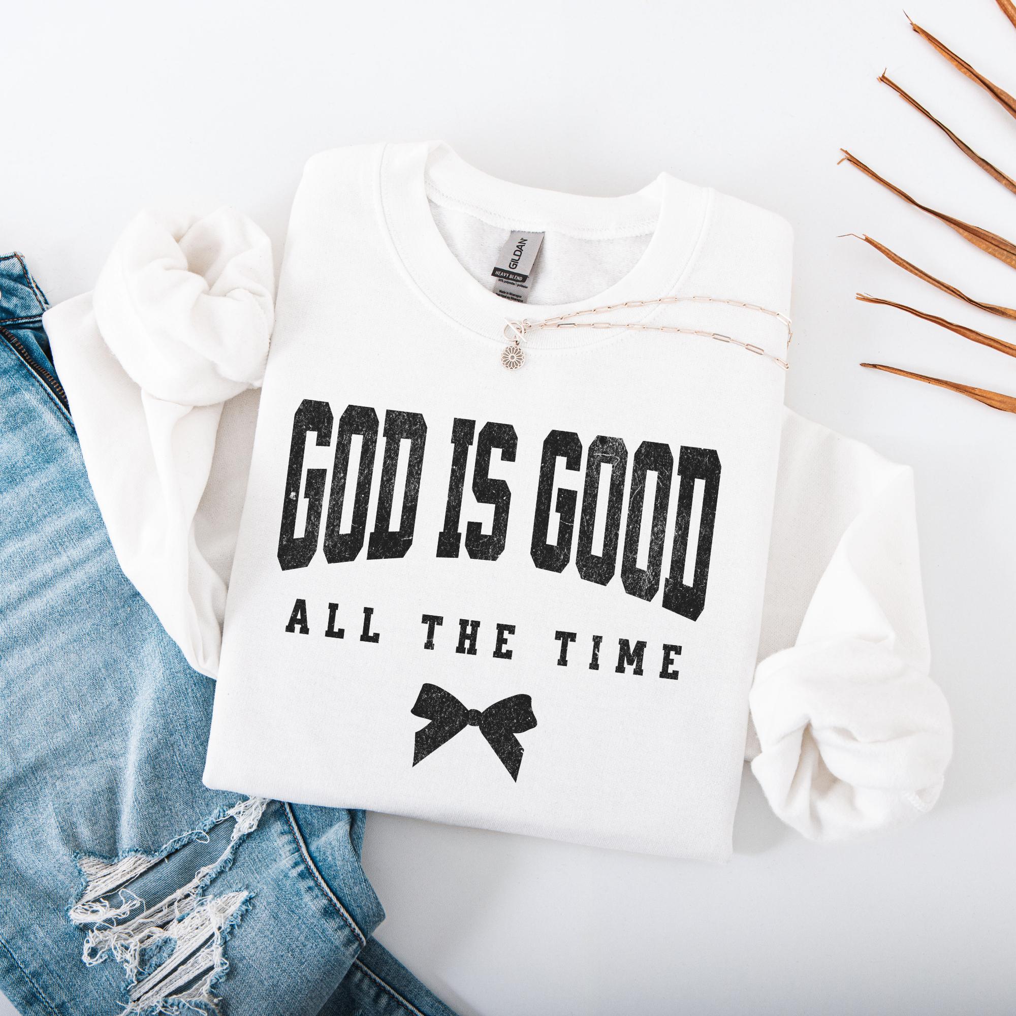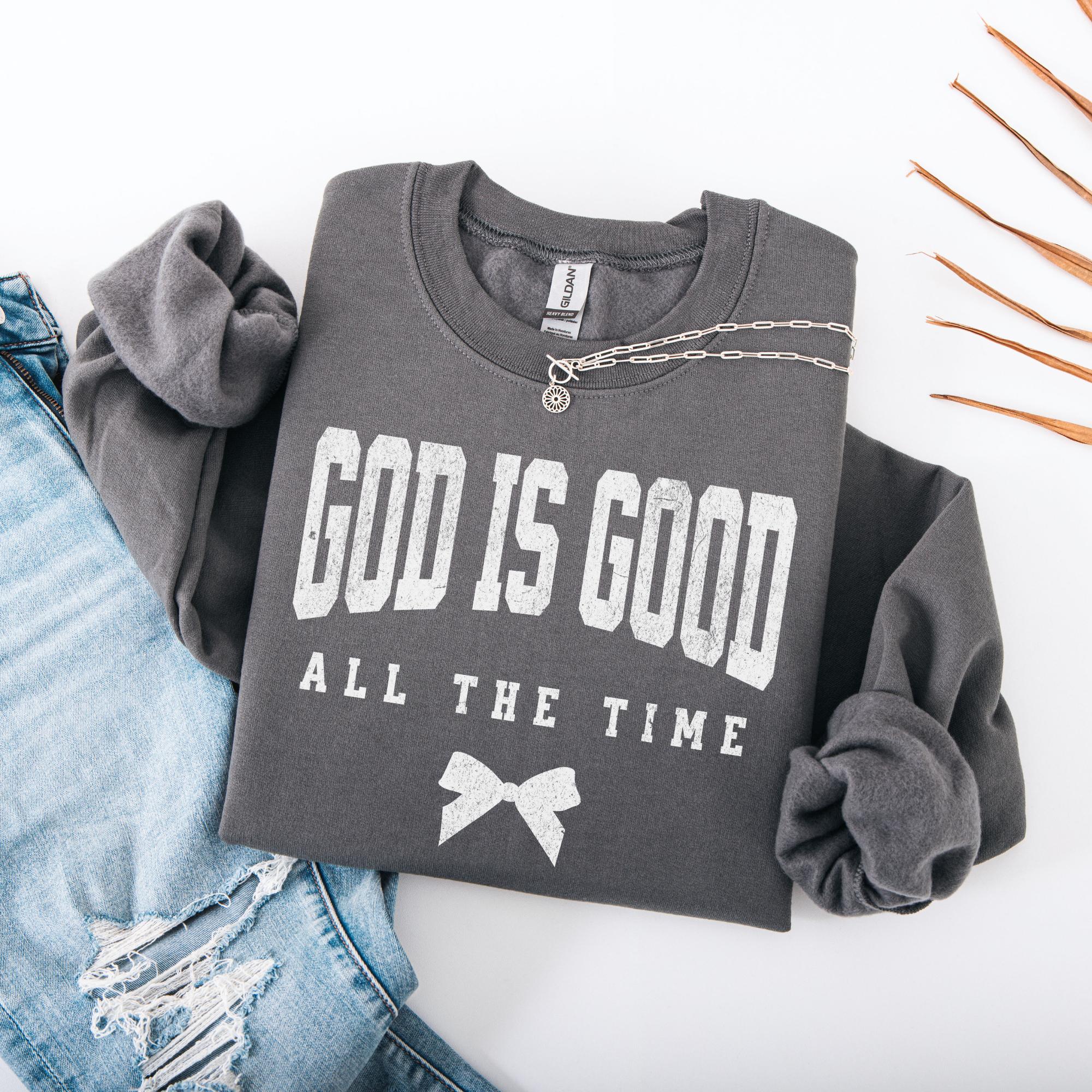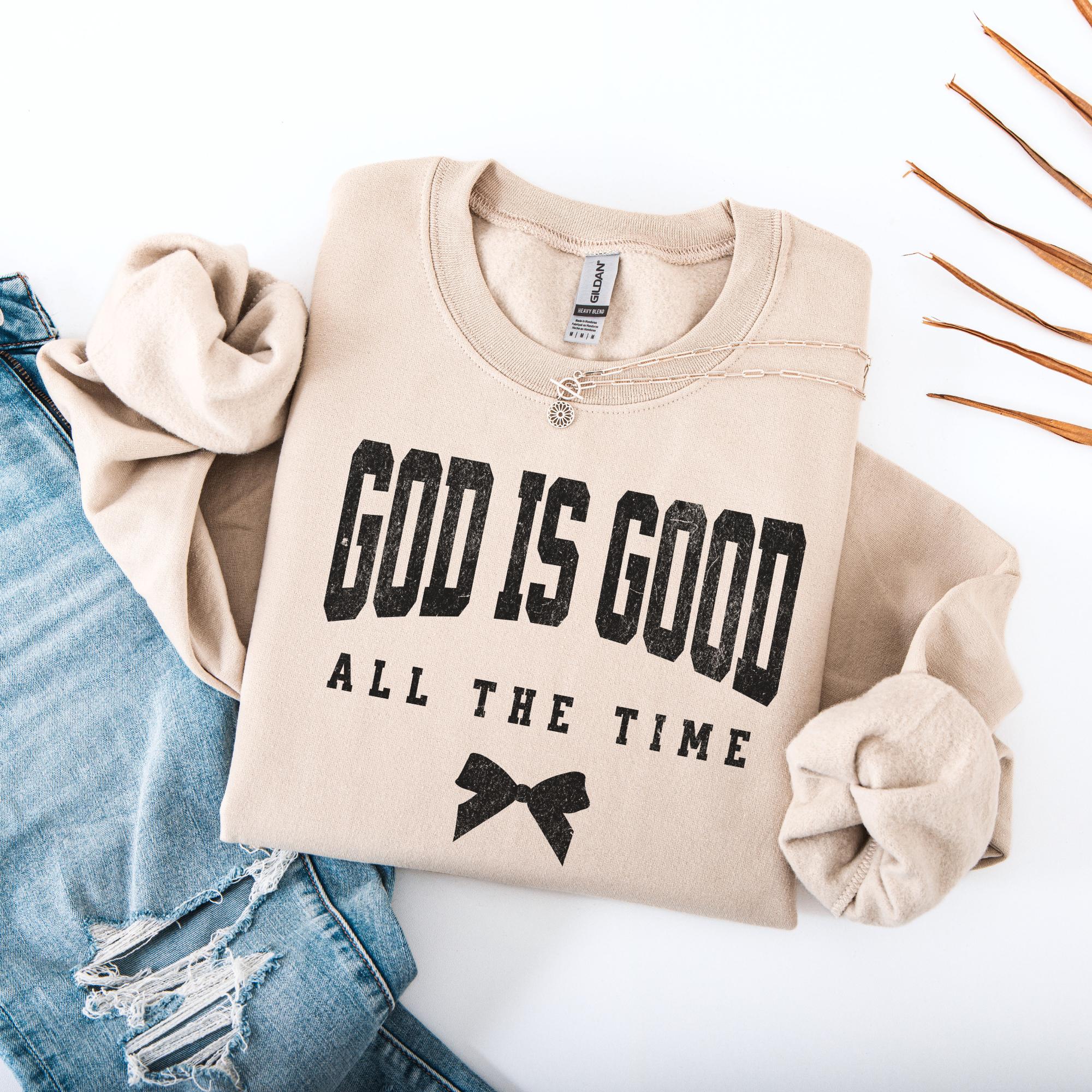 Stay cozy while sharing your faith with our “God is Good All the Time” Sweatshirt. This uplifting crewneck is a daily reminder of hope, encouragement, and God’s constant presence. Designed with a clean, minimalist style, it’s the perfect blend of comfort and inspiration for everyday wear.