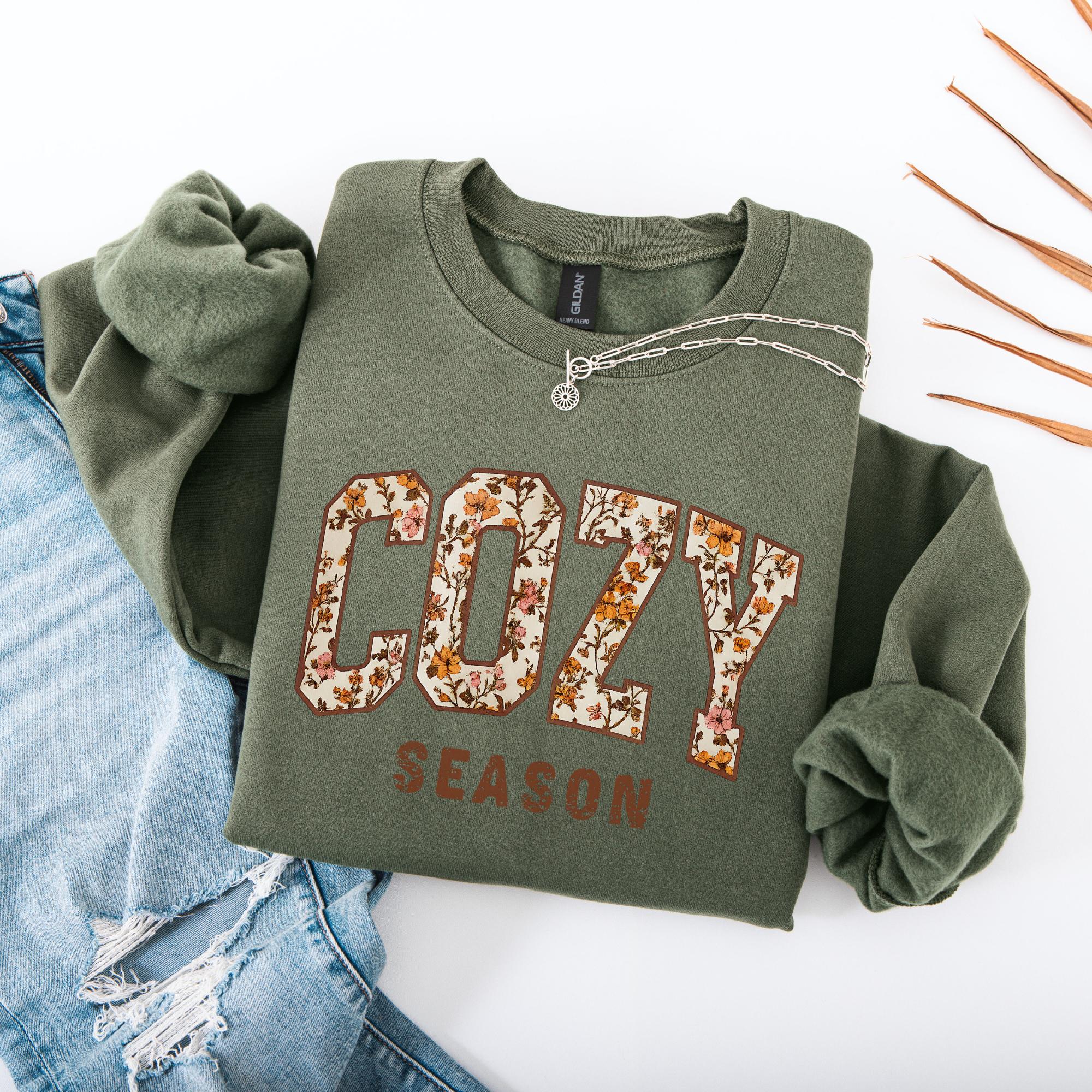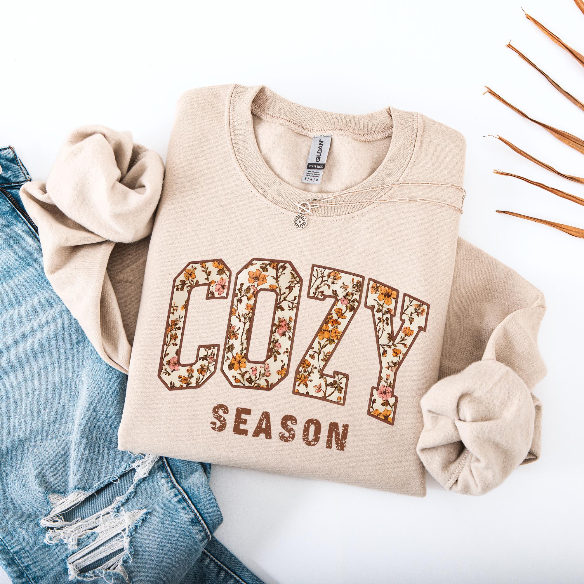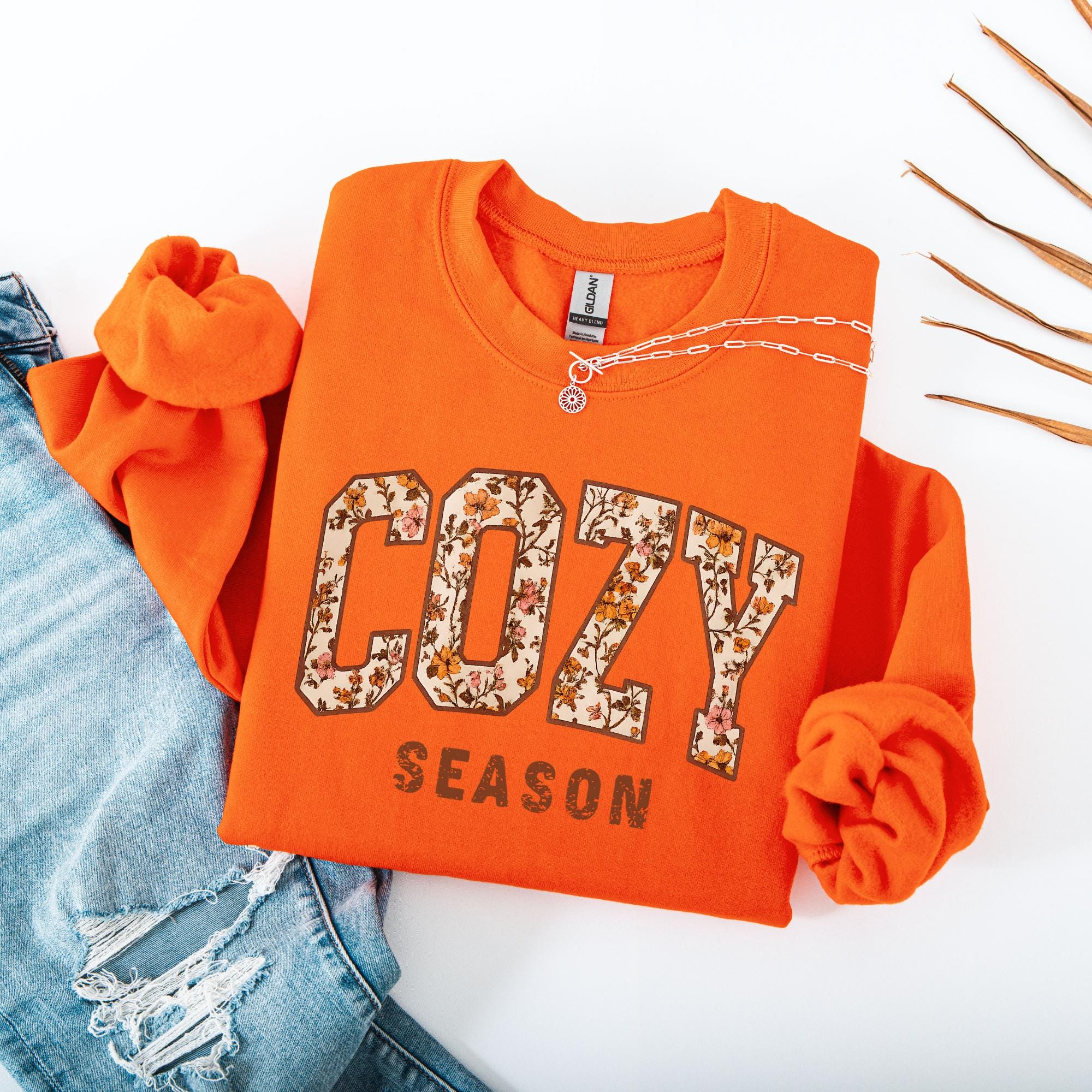 Snuggle up in style with this charming “Cozy Season” sweatshirt! Featuring soft floral accents that add a feminine touch, this sweatshirt is the perfect blend of comfort and seasonal charm. Whether you’re sipping pumpkin spice lattes, strolling through the pumpkin patch, or curling up with a blanket and your favorite book, this piece is made for all things cozy.