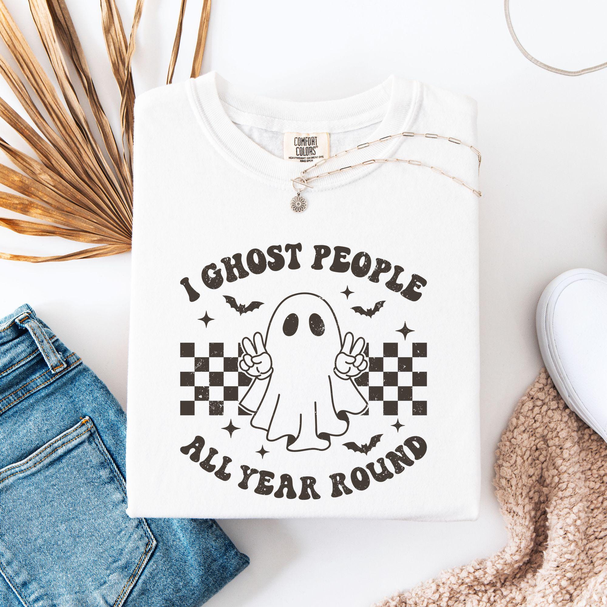 I Ghost People All Year Round Shirt | Retro Checkered Ghost Tee | Funny Spooky Season Graphic Tee