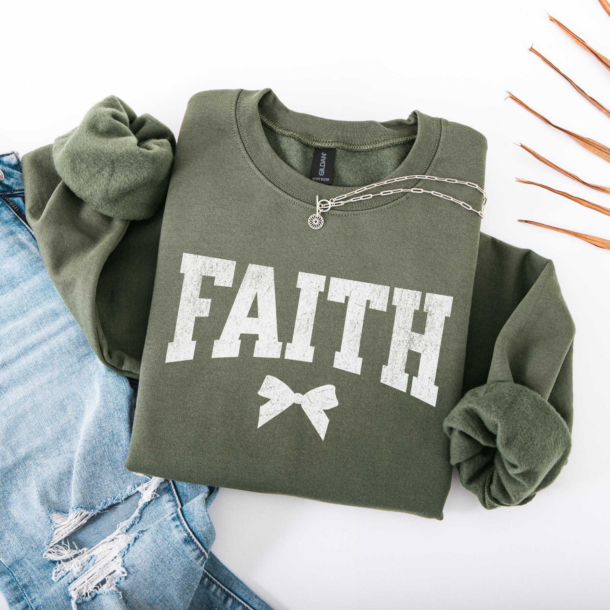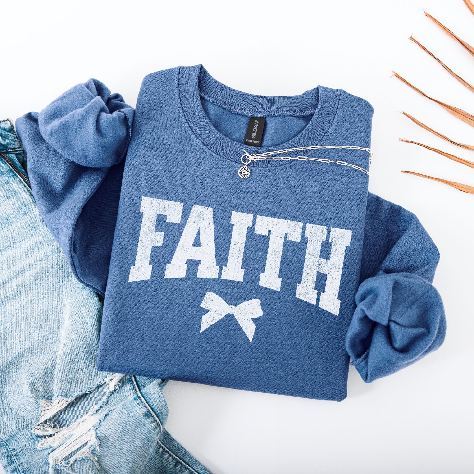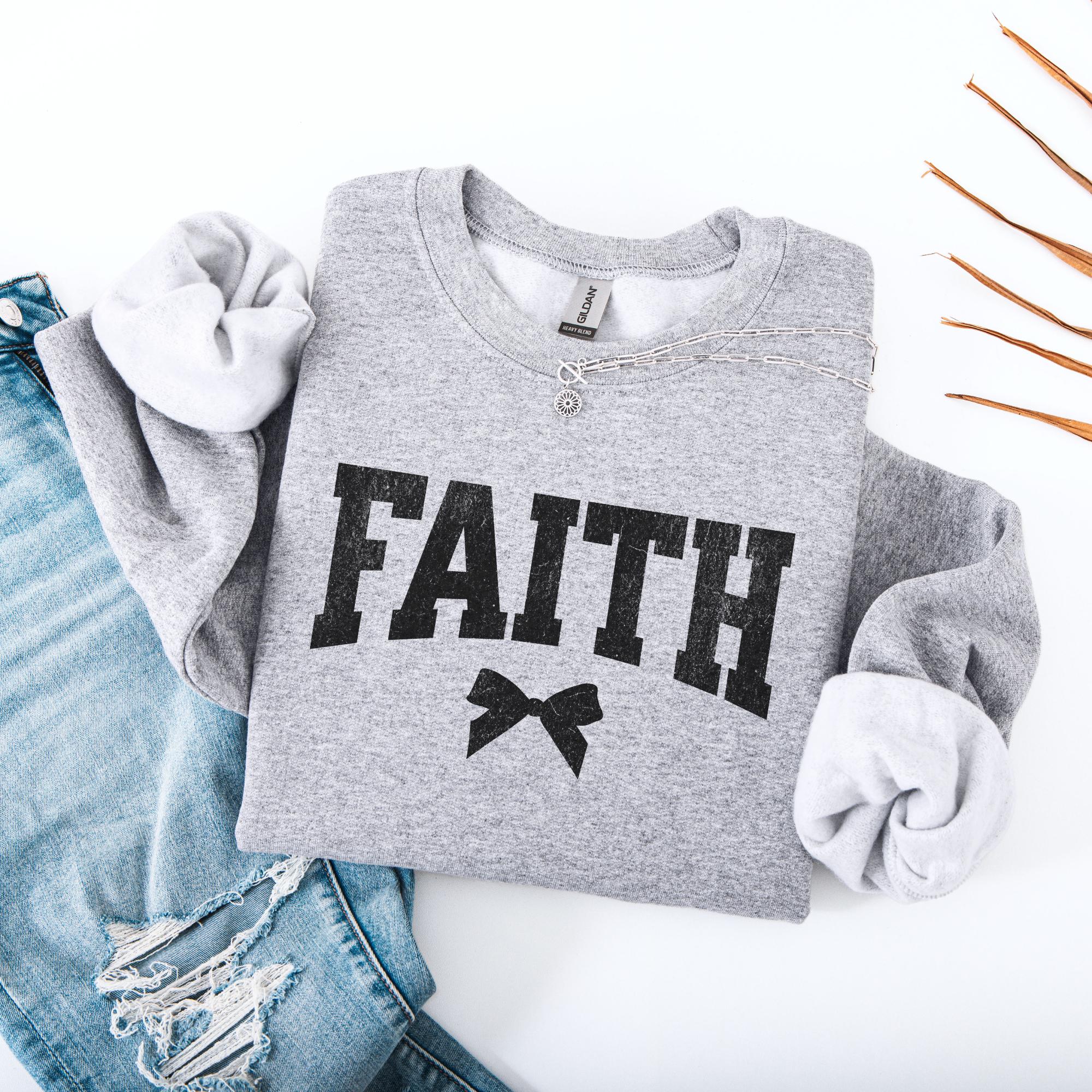Faith Bow Sweatshirt – Christian Crewneck for Women