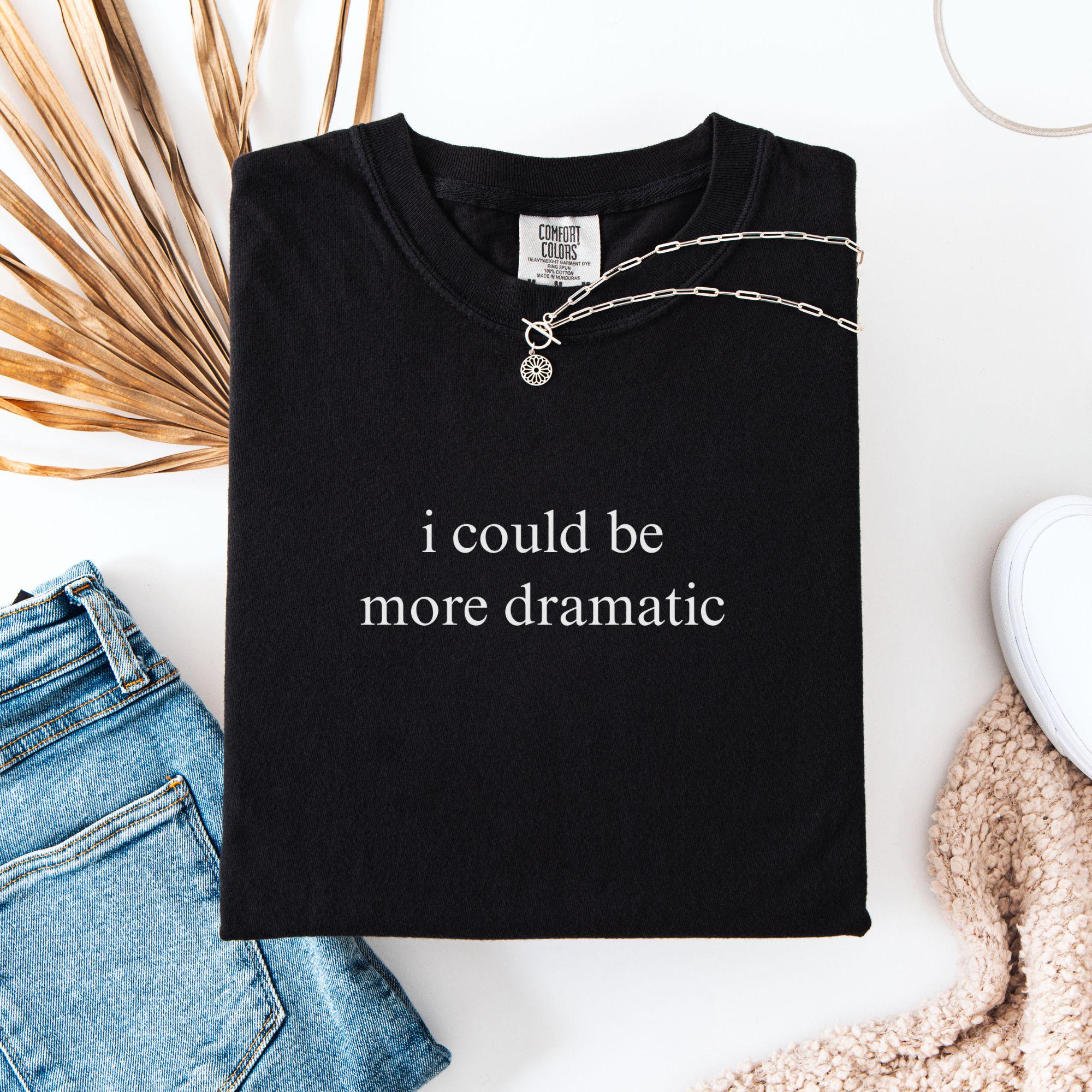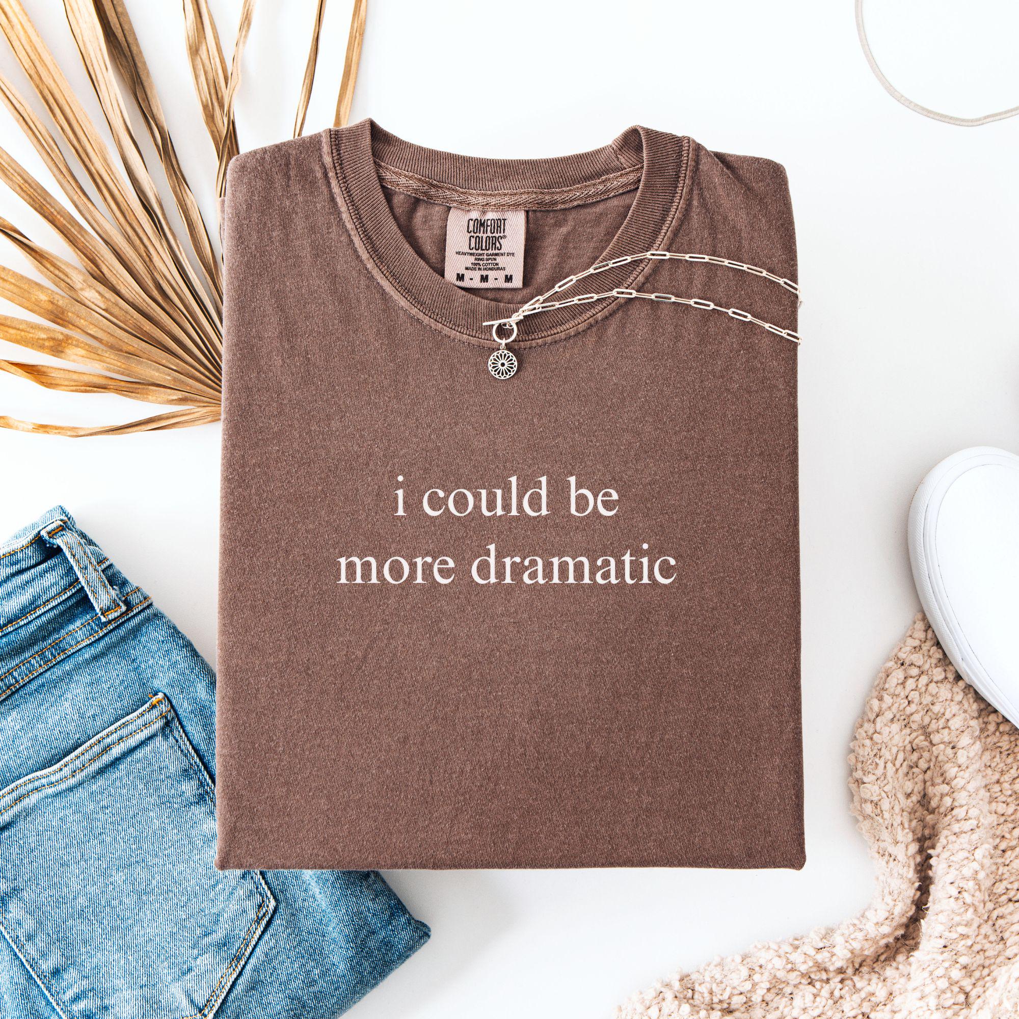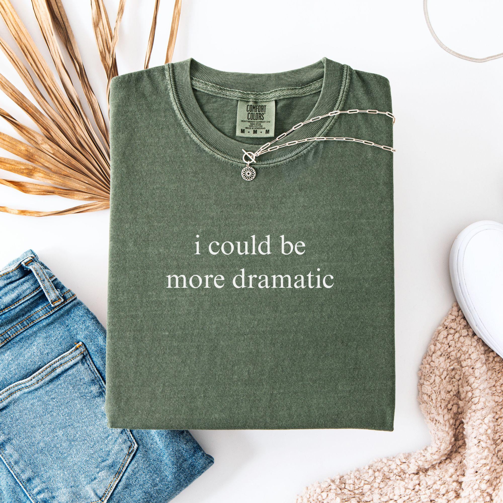 ring a little sass to your wardrobe with our I Could Be More Dramatic Comfort Colors Tee. Featuring a witty minimalist design, this tee is perfect for anyone who embraces their extra side—or knows someone who does. The crisp white text pops against the vintage denim blue, making it a stylish and playful everyday favorite.