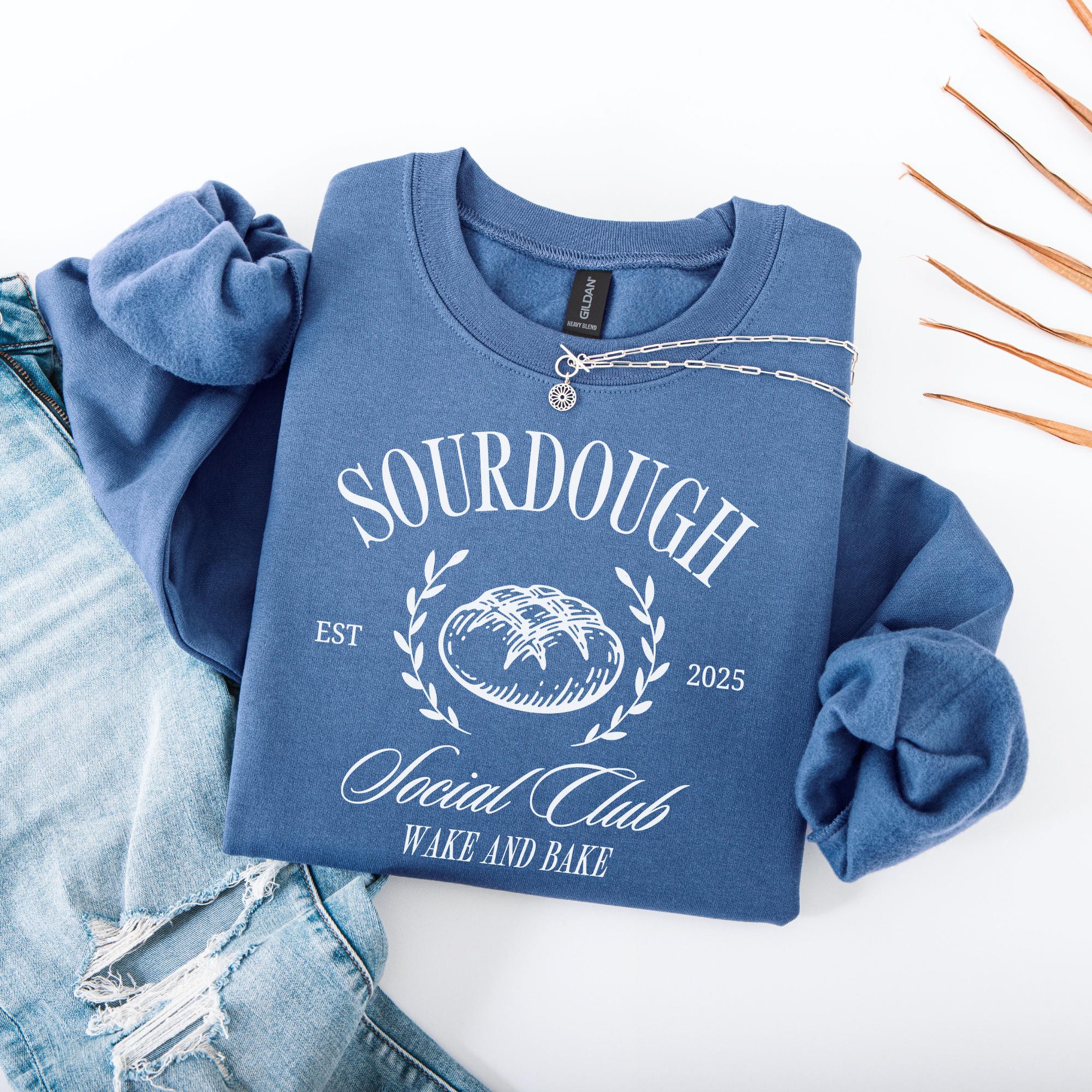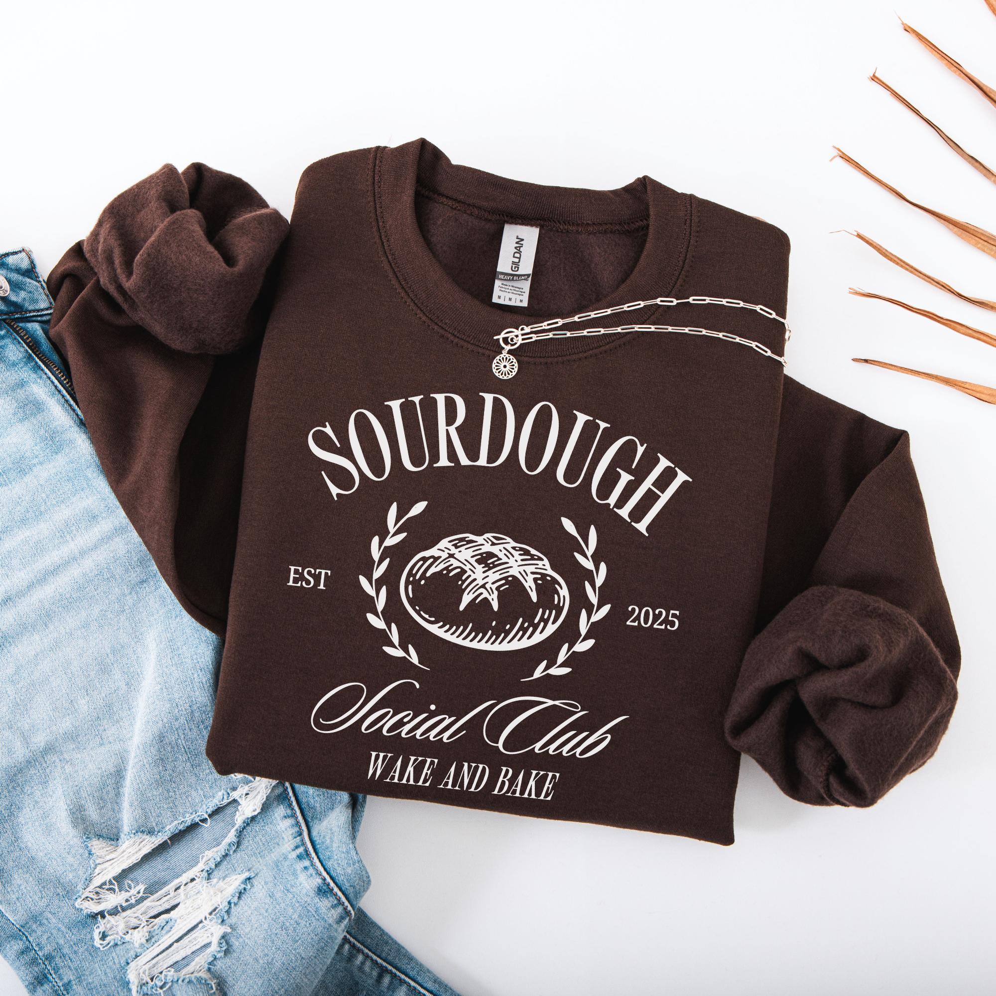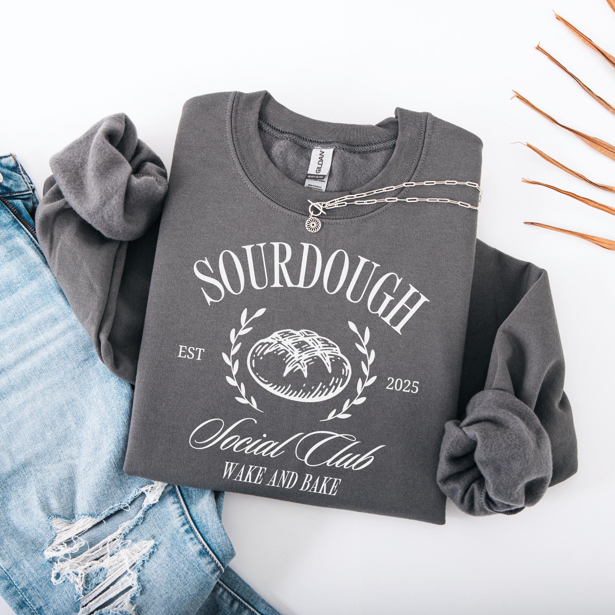 Bring some flavor to your wardrobe with this playful sourdough sweatshirt – the ultimate cozy piece for anyone who believes in wake and bake!
