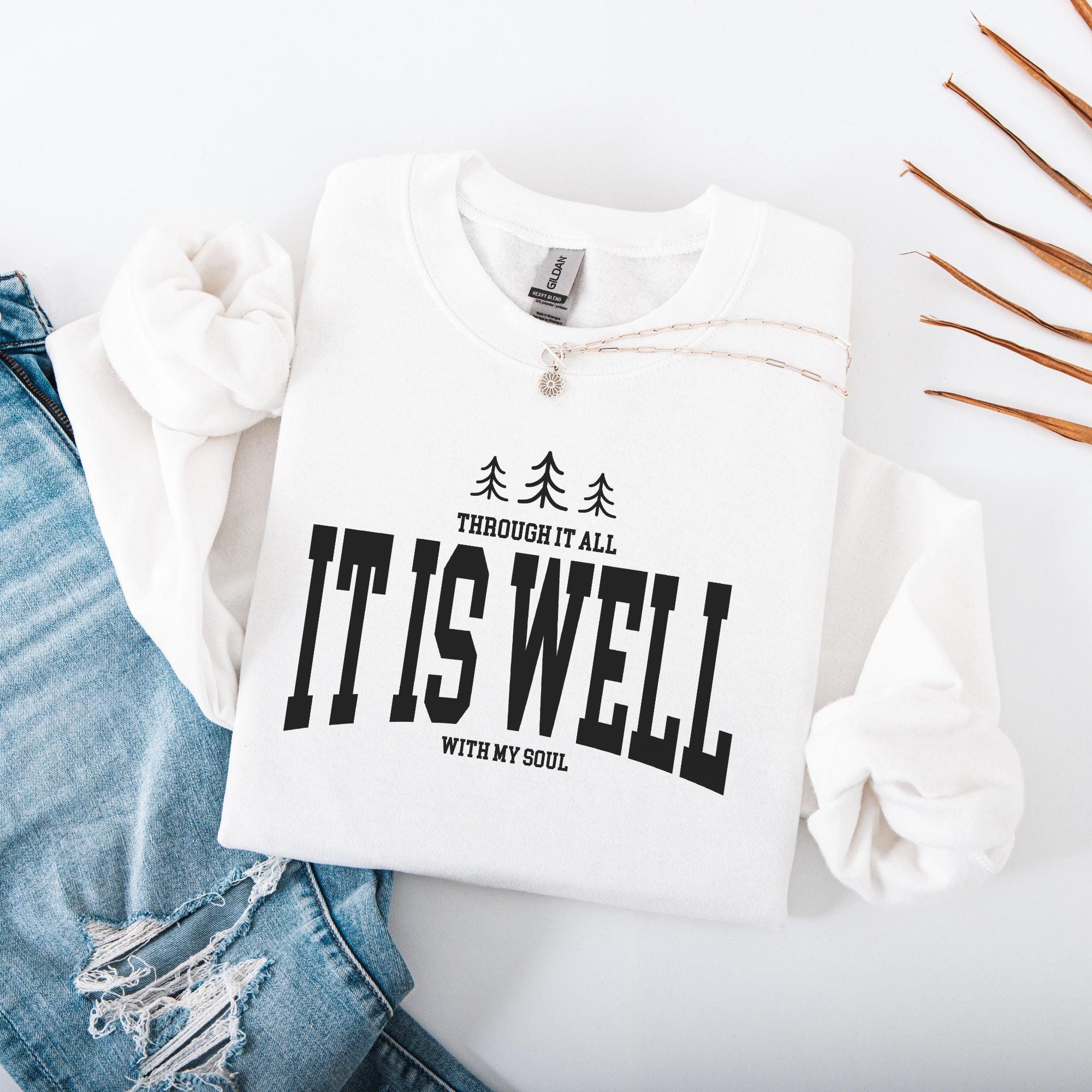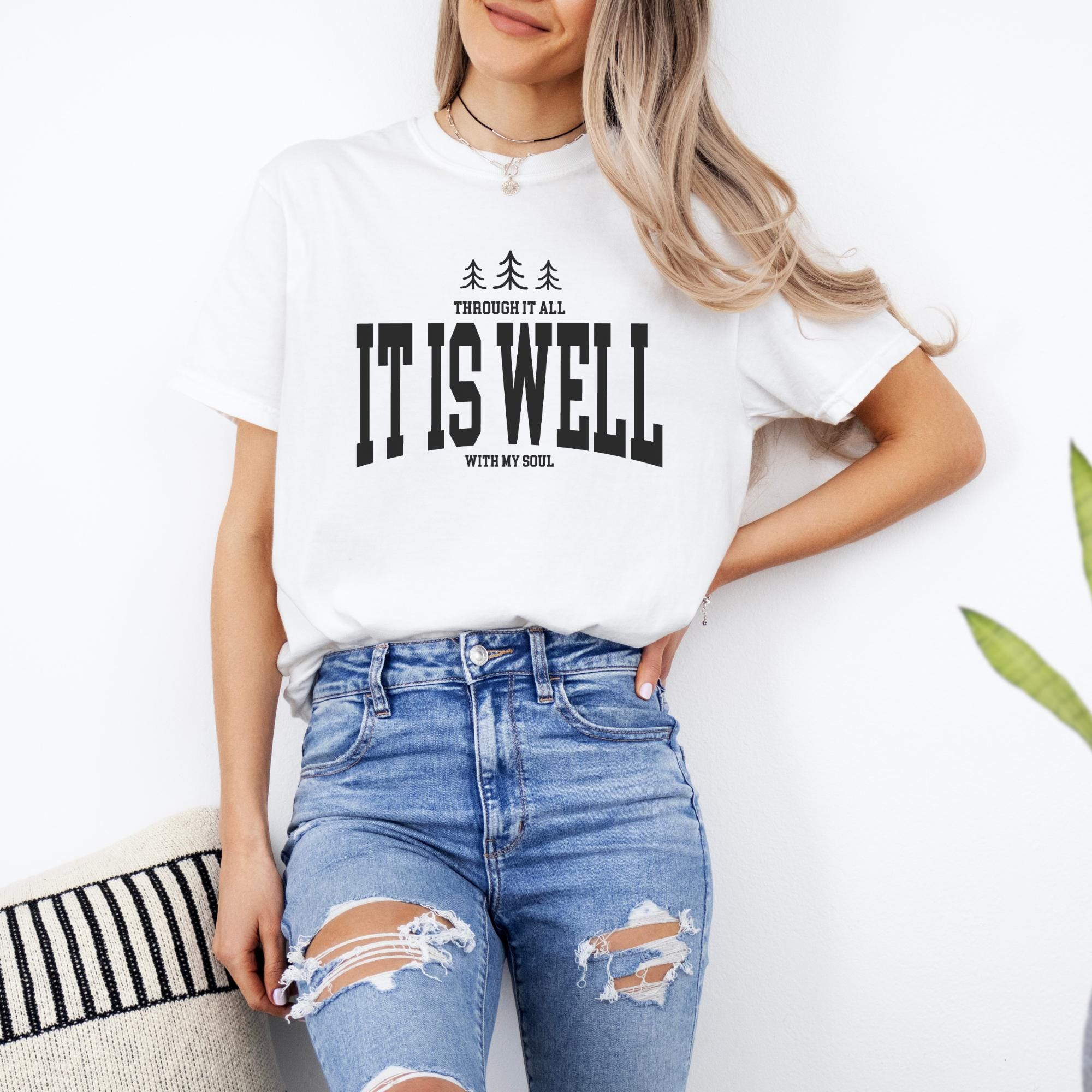 Live your faith in comfort and style — this “It Is Well With My Soul” tee or sweatshirt makes a beautiful addition to any Christian wardrobe.