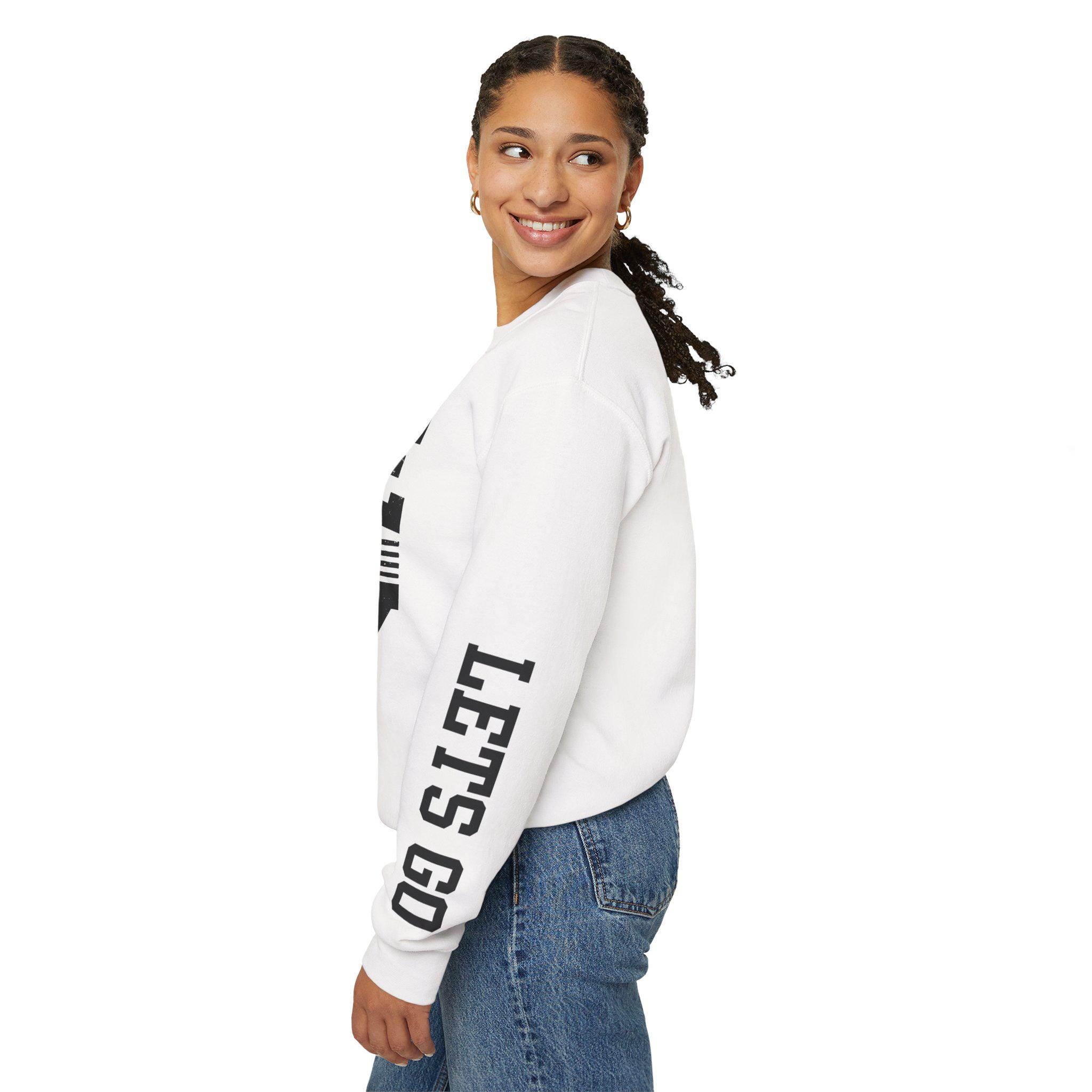 Unisex sizing (true to size; size up for oversized fit) Cozy cotton/poly blend crewneck sweatshirt (Gildan 18000) Design printed professionally for long-lasting wear Customizable with ANY team name or phrase Multiple sweatshirt colors available