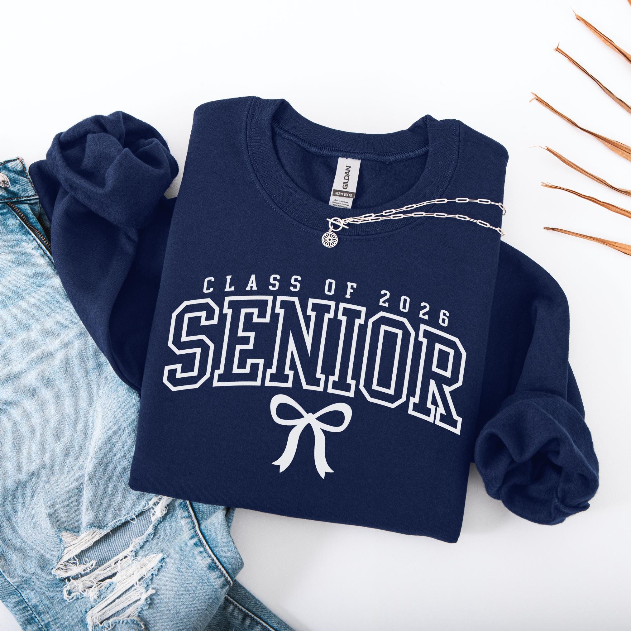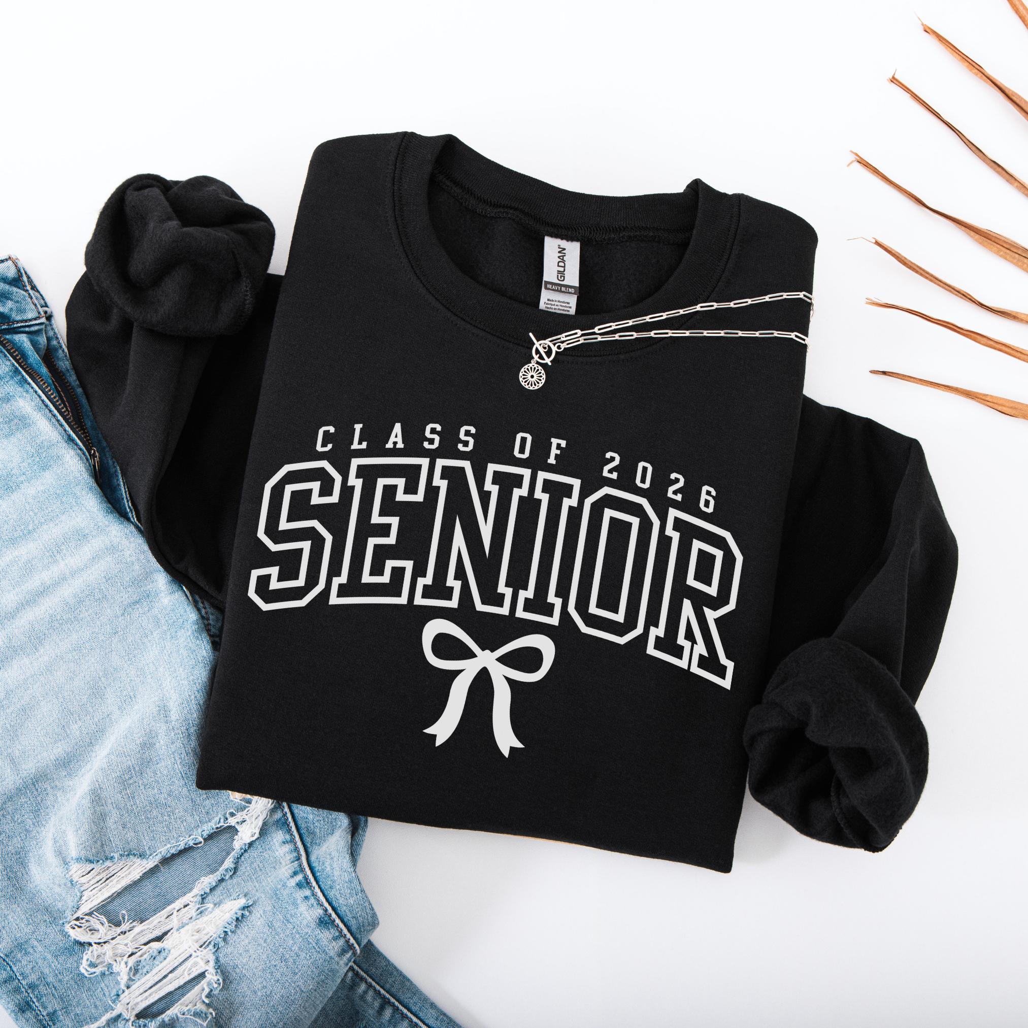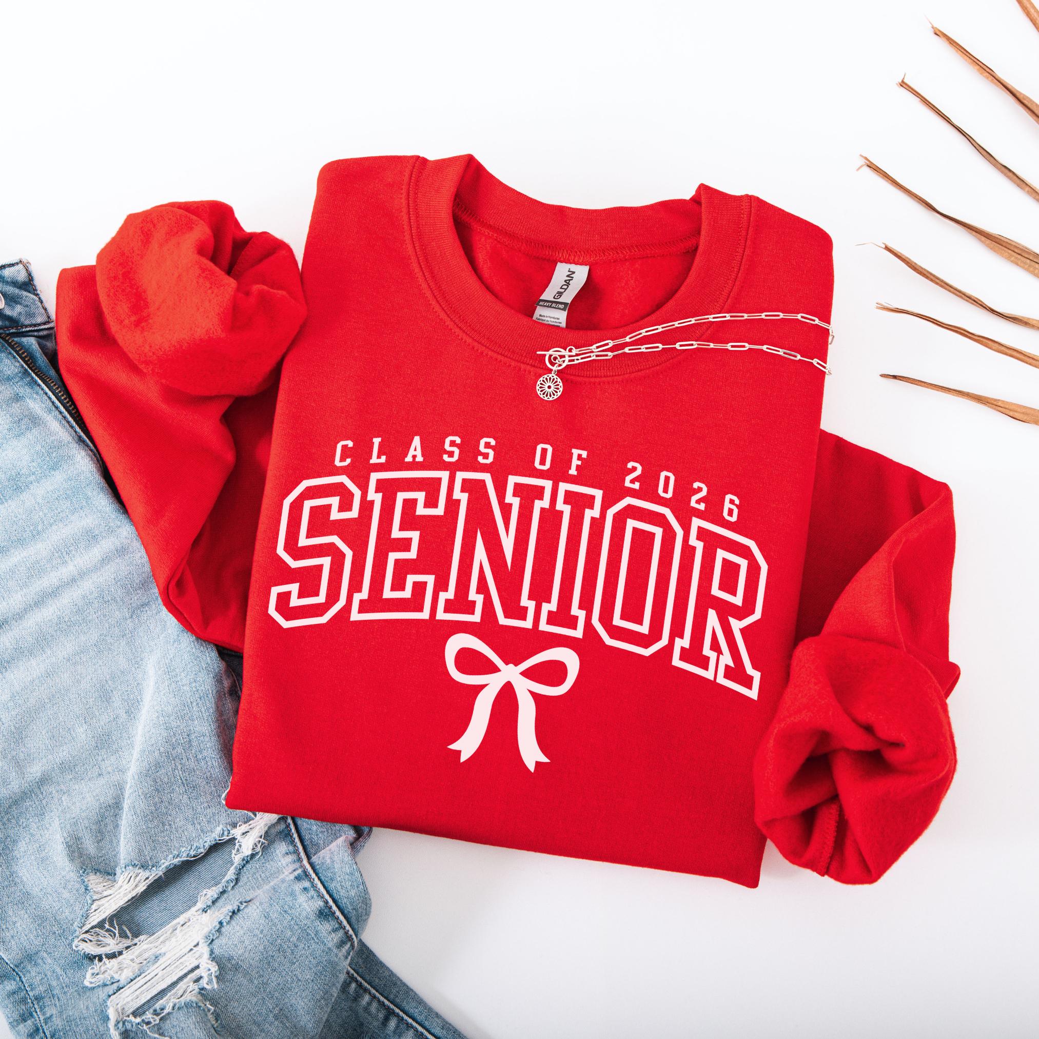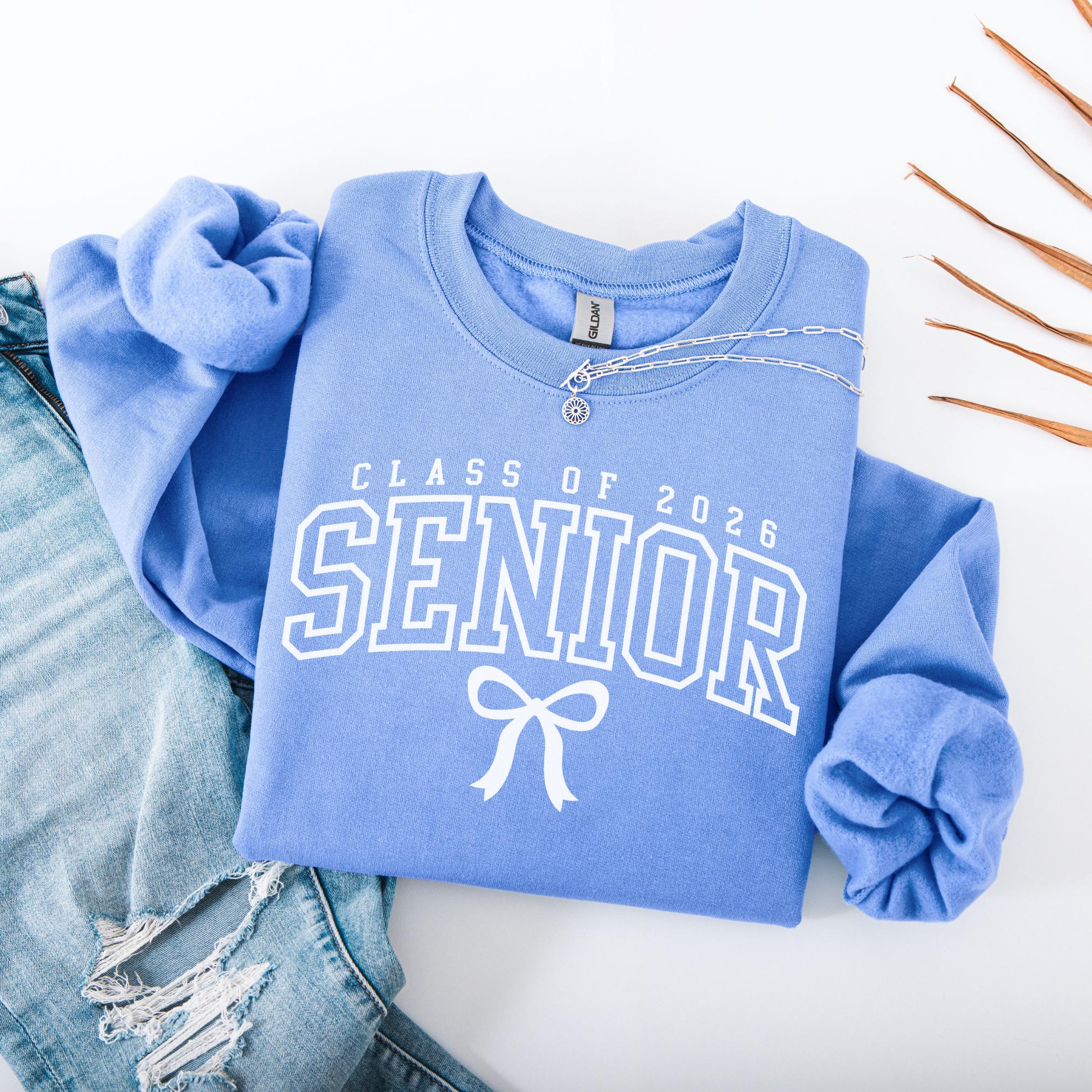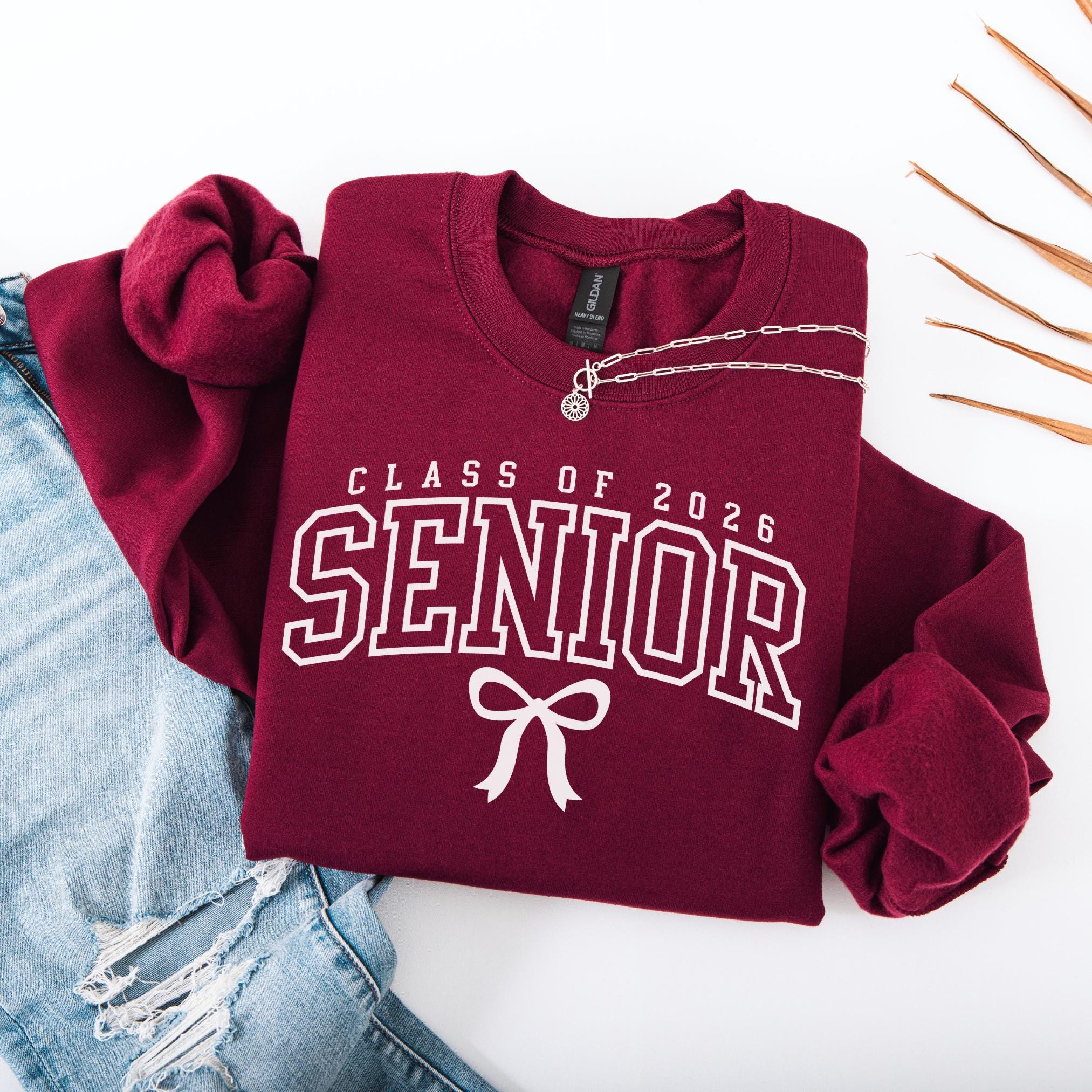 Designed with a bold collegiate “SENIOR” font and finished with a feminine bow detail, it’s the perfect mix of trendy and classic. Whether you’re gifting it to your favorite senior or treating yourself, this sweatshirt makes senior year extra special.