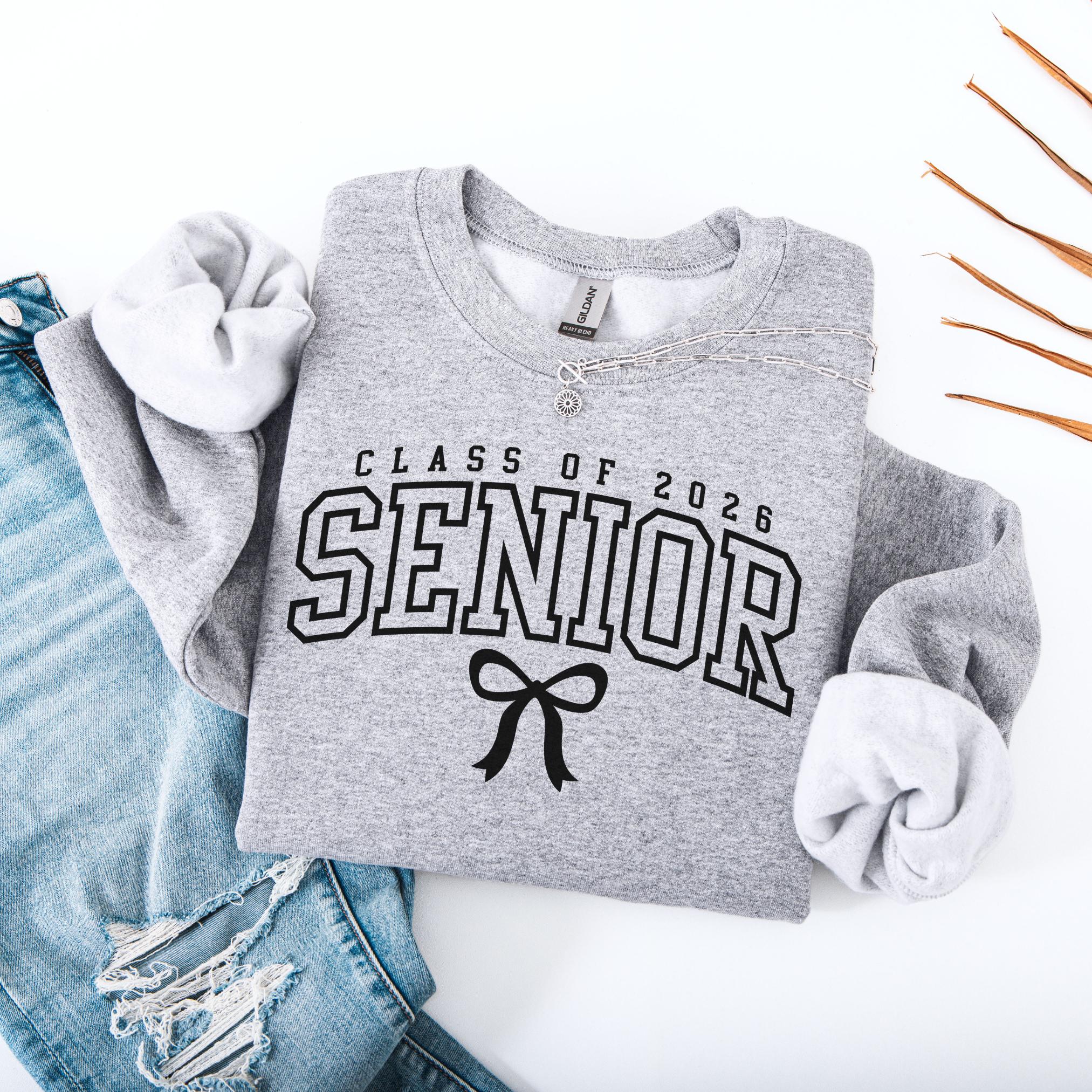 Celebrate your senior year in style with this Class of 2026 Senior sweatshirt featuring a chic coquette bow accent. Perfect for graduation season, spirit days, or just showing off your senior pride, this sweatshirt is comfy, cute, and full of school-year memories.