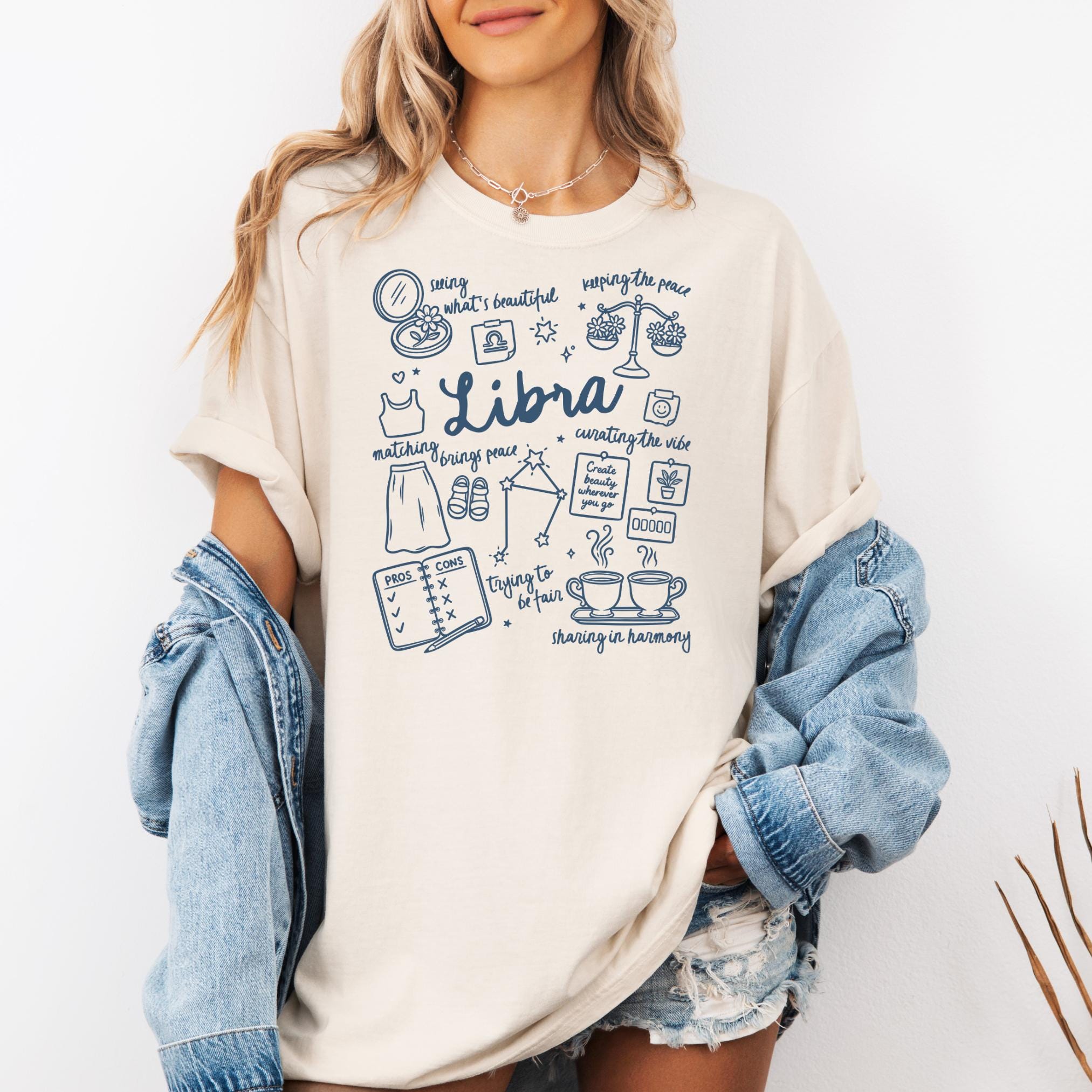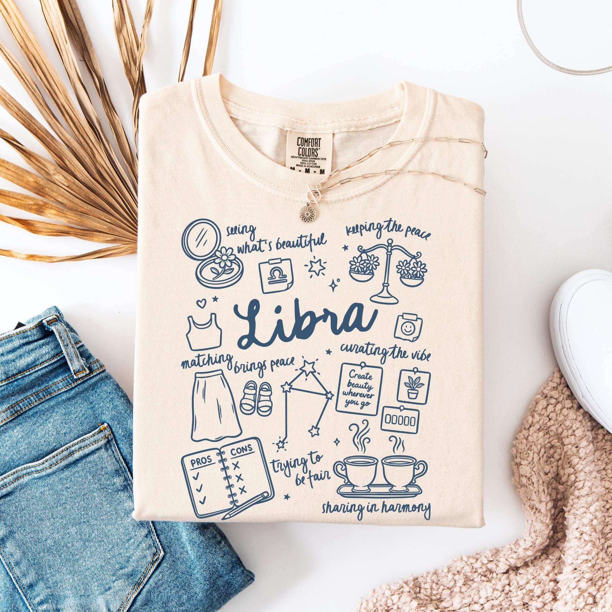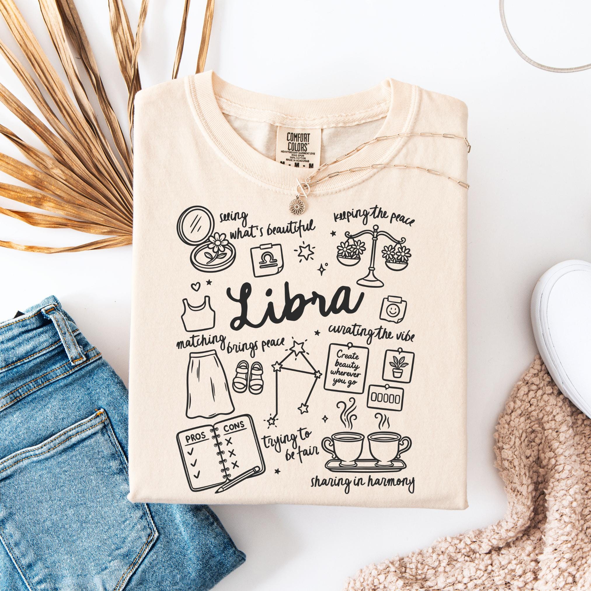 This Comfort Colors tee is perfect for anyone who embodies the Libra spirit. Featuring hand-drawn doodles that highlight all things Libra — from keeping the peace to curating the vibe — this shirt is both stylish and meaningful. Made with soft, garment-dyed cotton, it’s comfy enough for everyday wear and makes the perfect gift for birthdays, astrology lovers, or your favorite Libra friend.