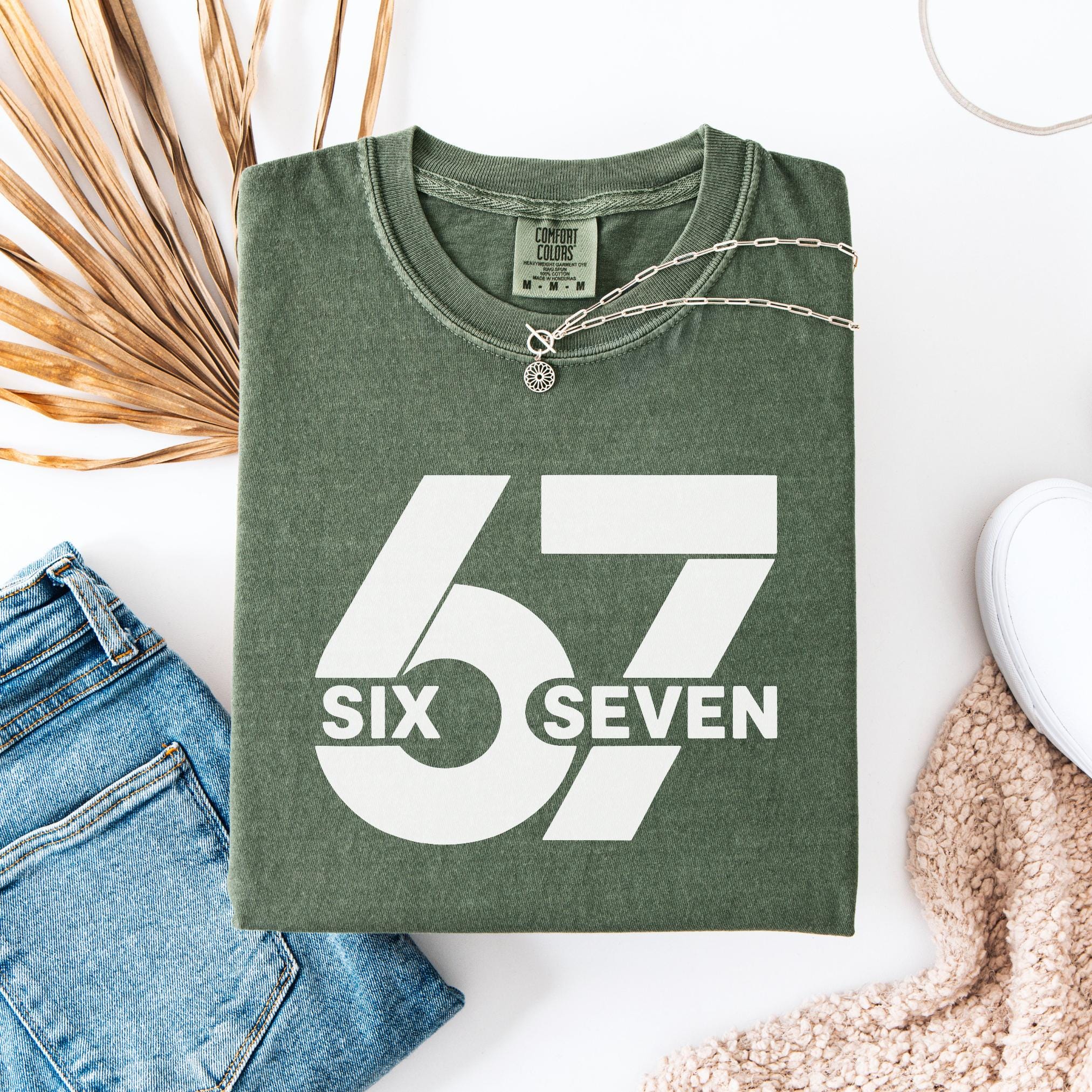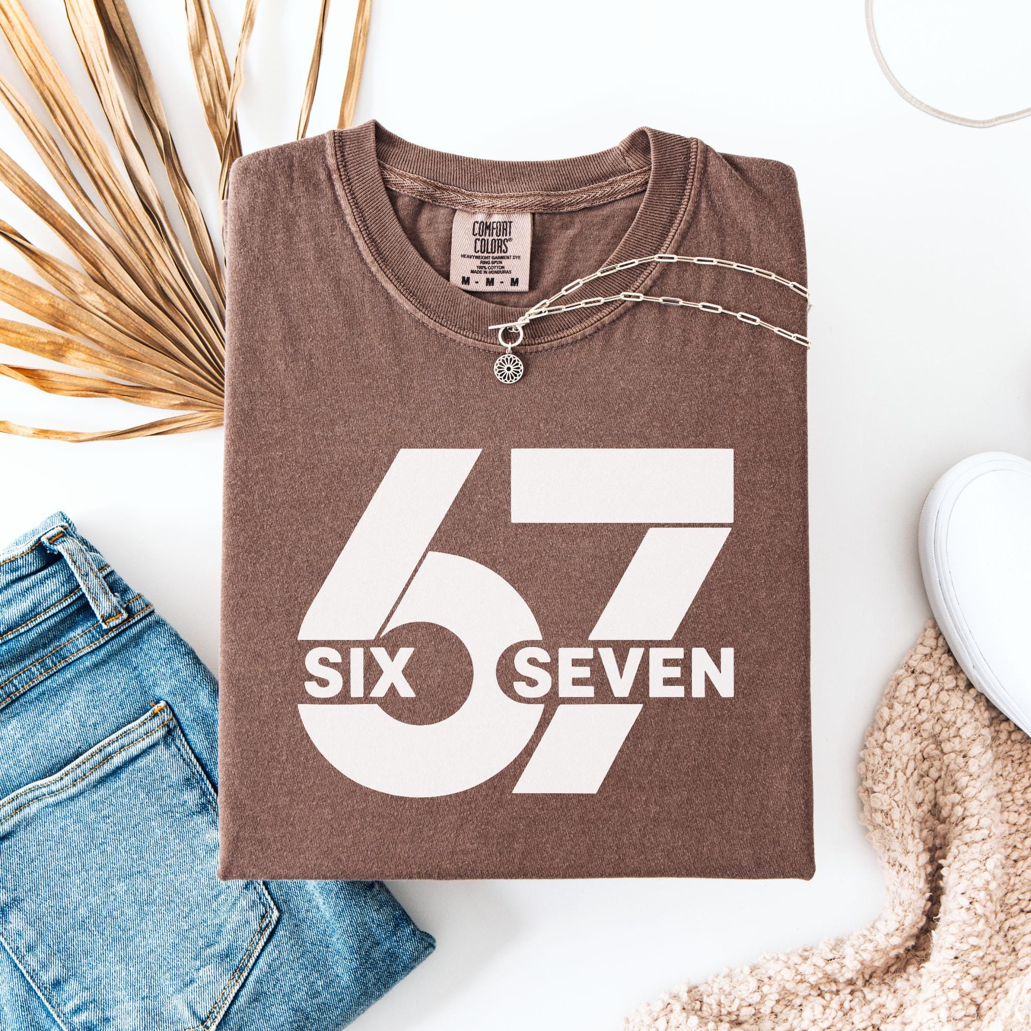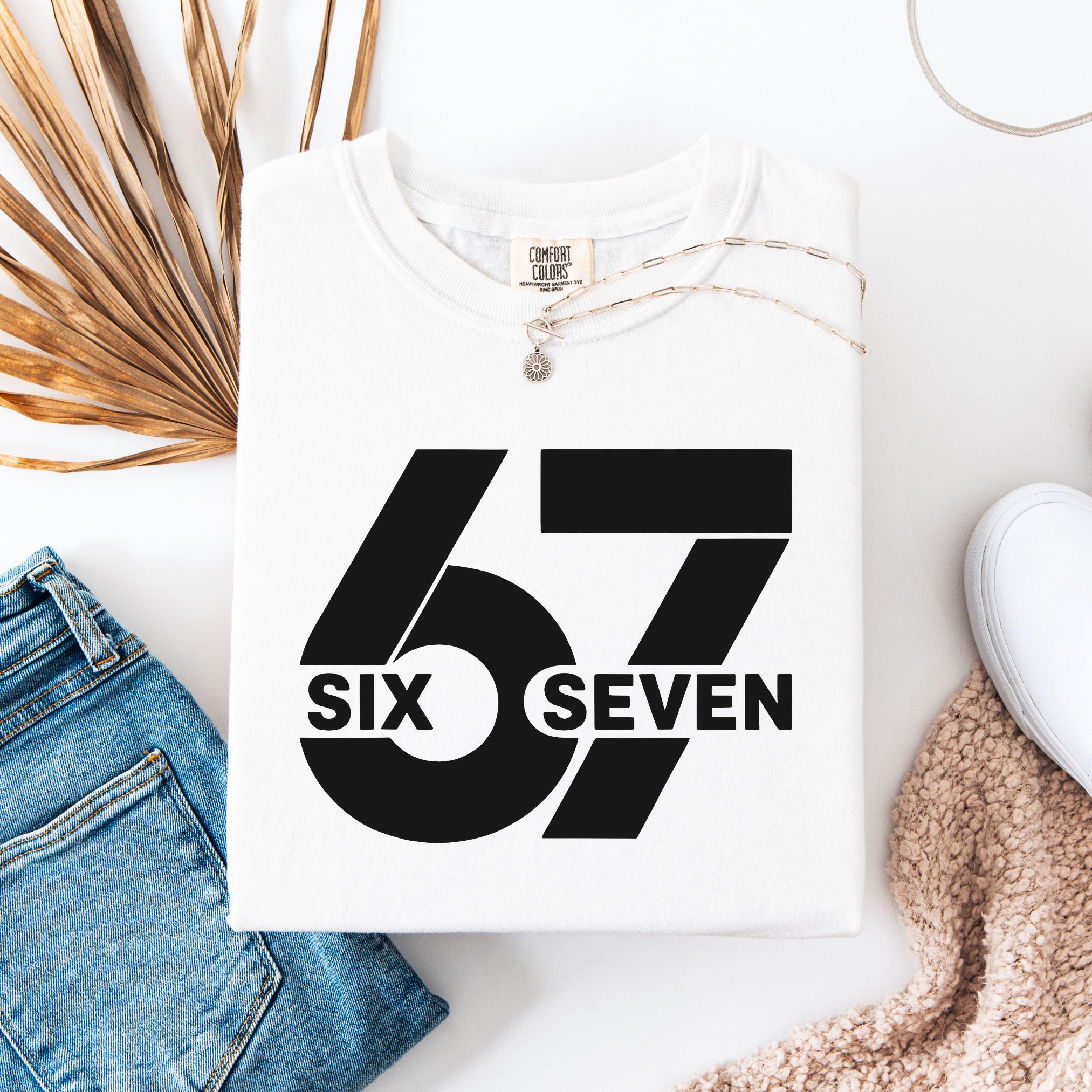 Make a bold statement with this 67 “Six Seven” Comfort Colors Tee. Featuring a clean minimalist design with oversized block numbers and modern typography, this shirt is perfect for fans of the iconic 67 reference, trend lovers, or anyone who appreciates unique graphic tees.