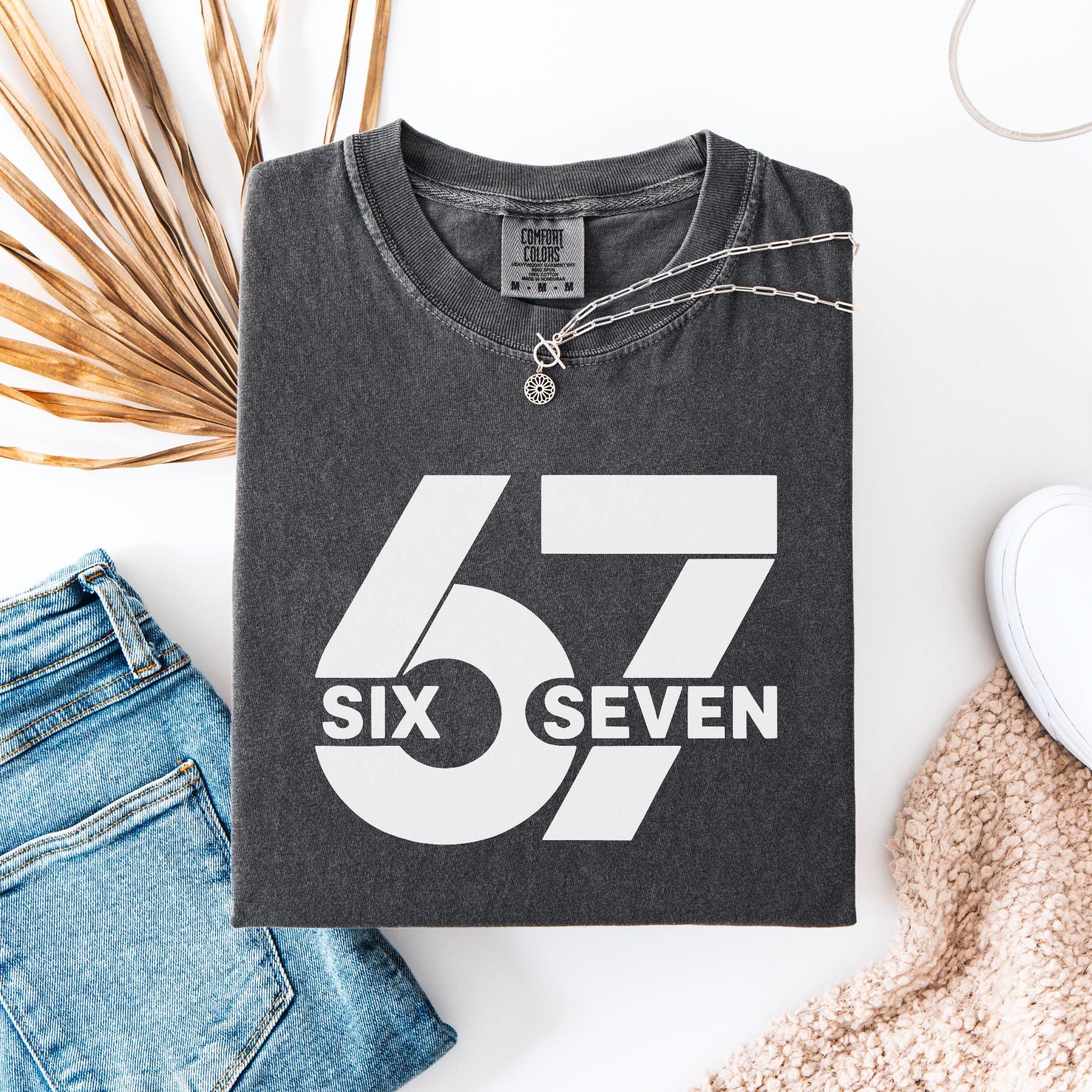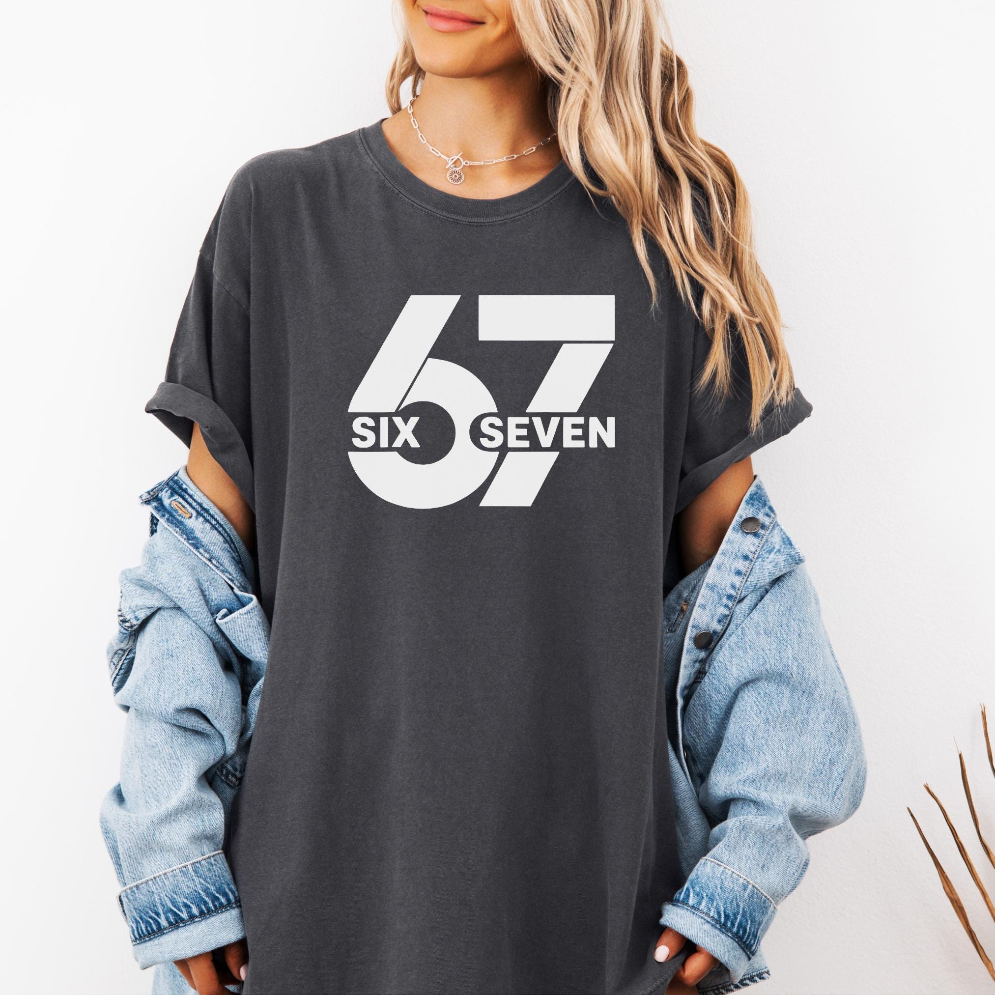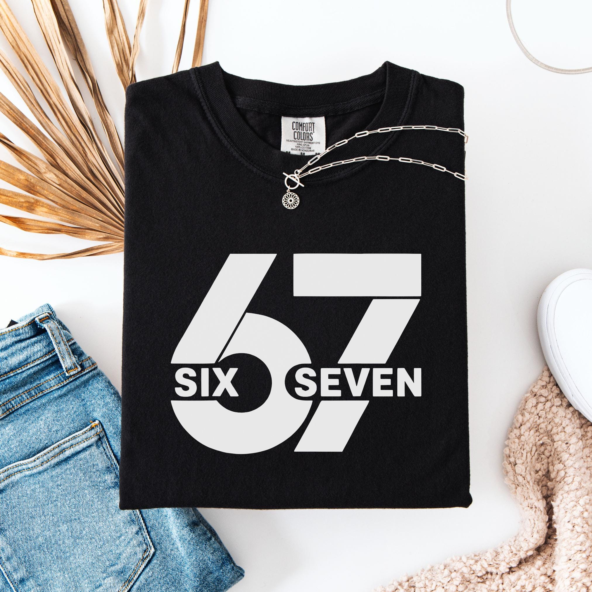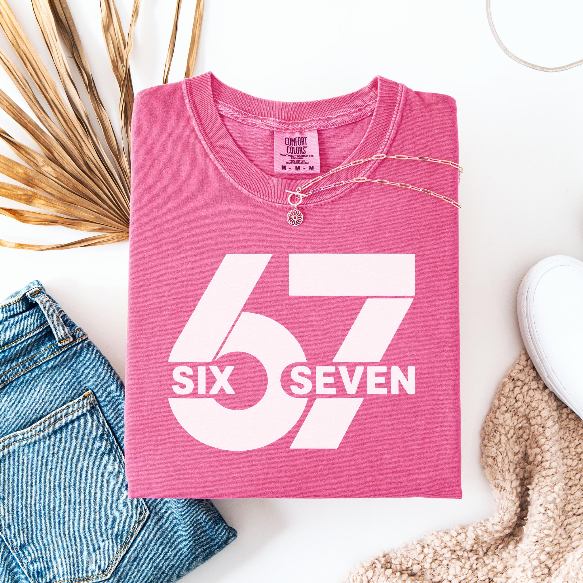 Make a bold statement with this 67 “Six Seven” Comfort Colors Tee. Featuring a clean minimalist design with oversized block numbers and modern typography, this shirt is perfect for fans of the iconic 67 reference, trend lovers, or anyone who appreciates unique graphic tees.