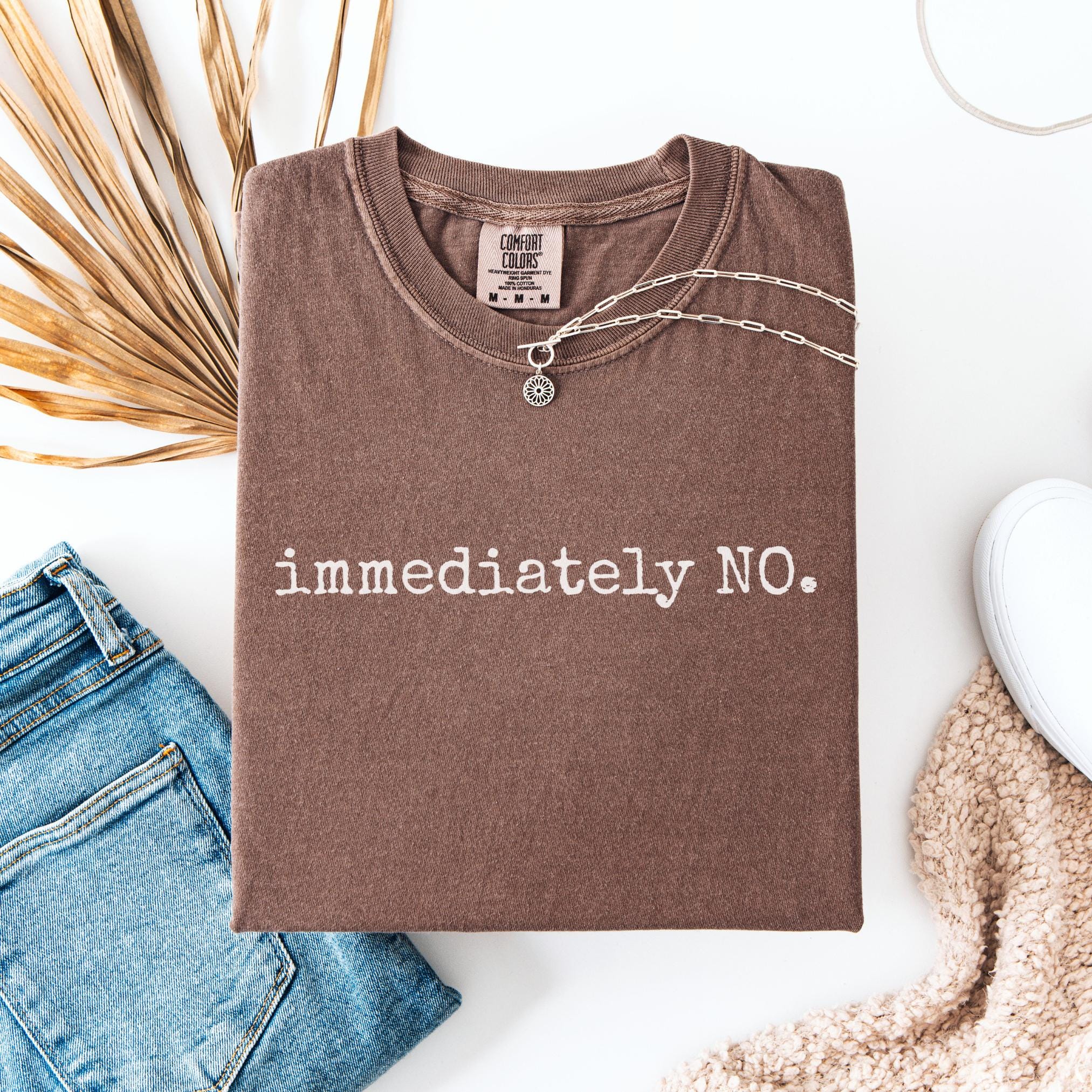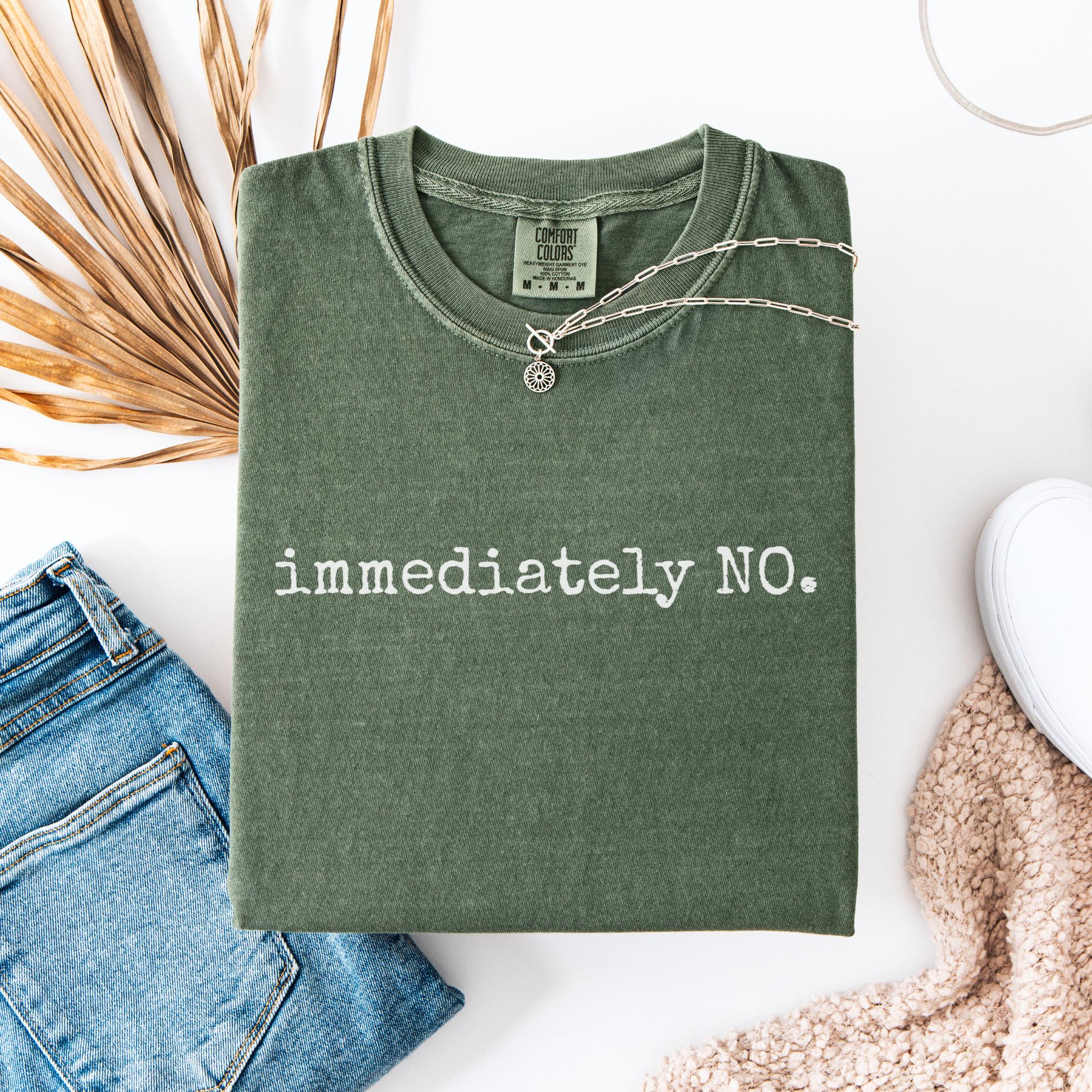 Say it loud and clear with this “immediately NO.” Comfort Colors Tee — the perfect mix of humor, sarcasm, and minimalist style. Designed in a bold typewriter-style font, this shirt captures the viral phrase everyone loves to quote.