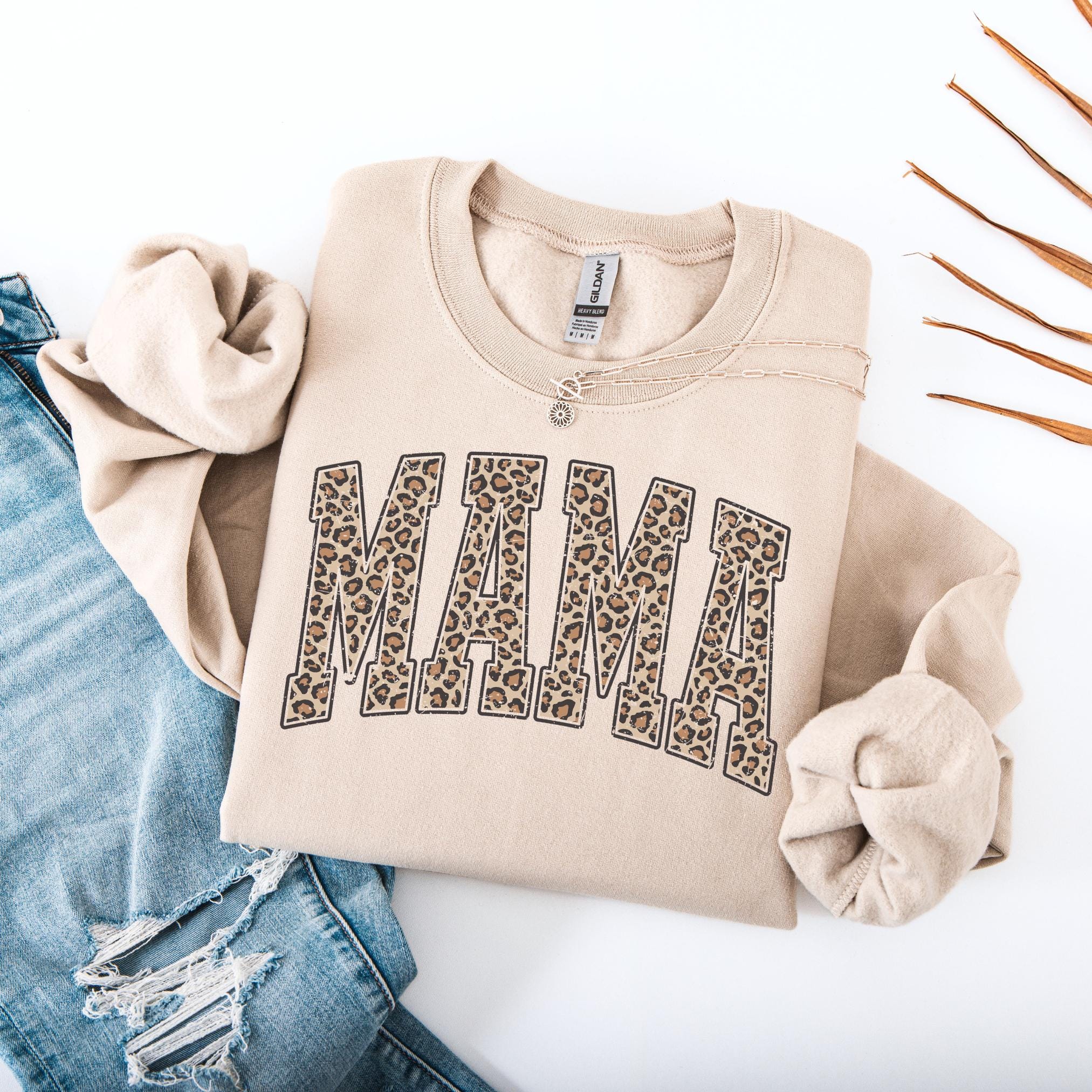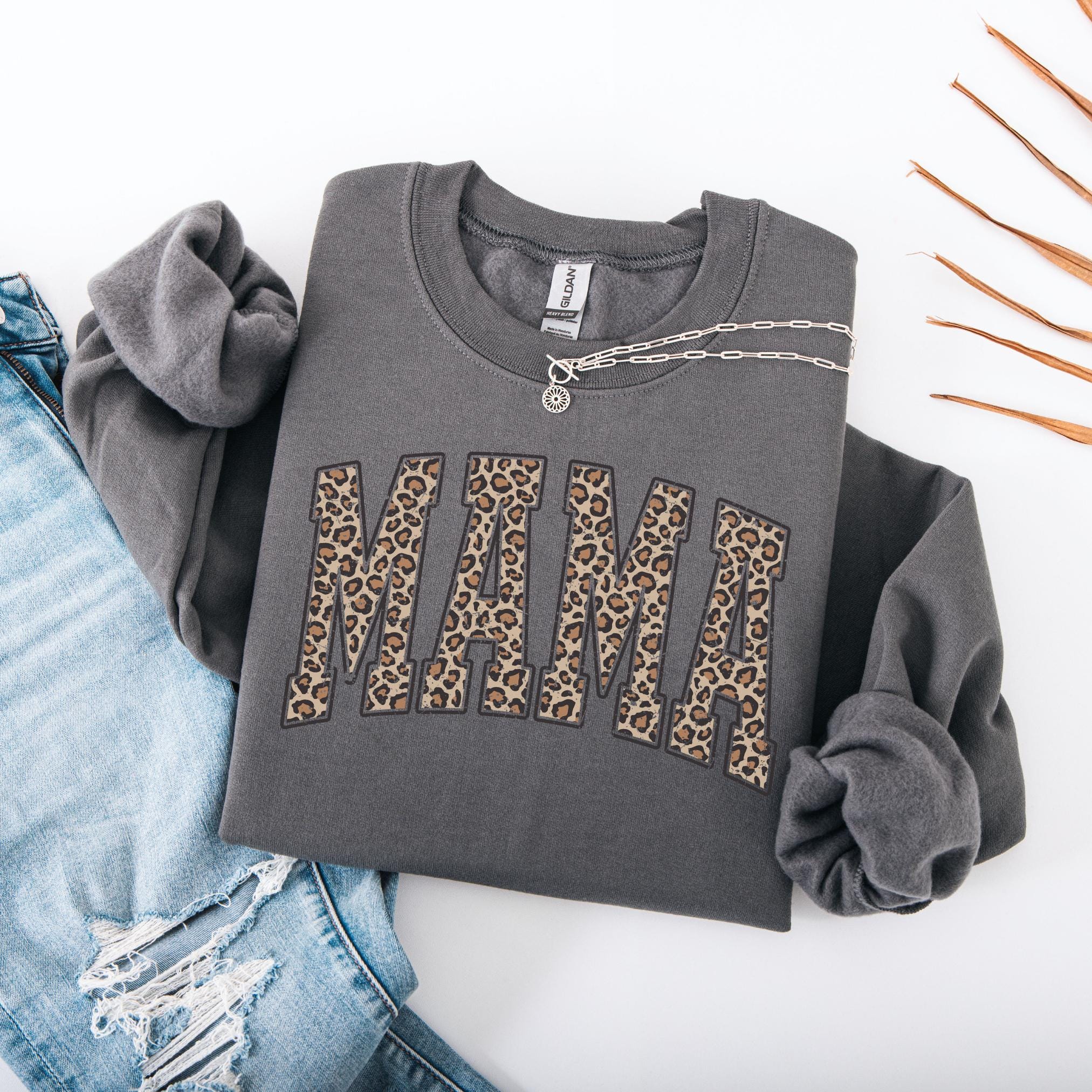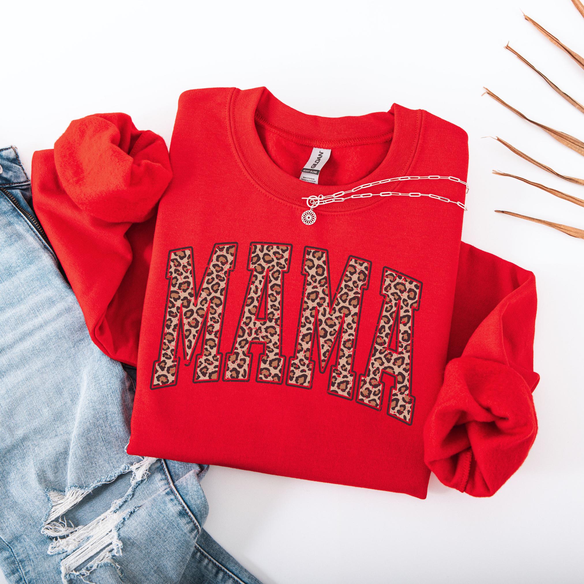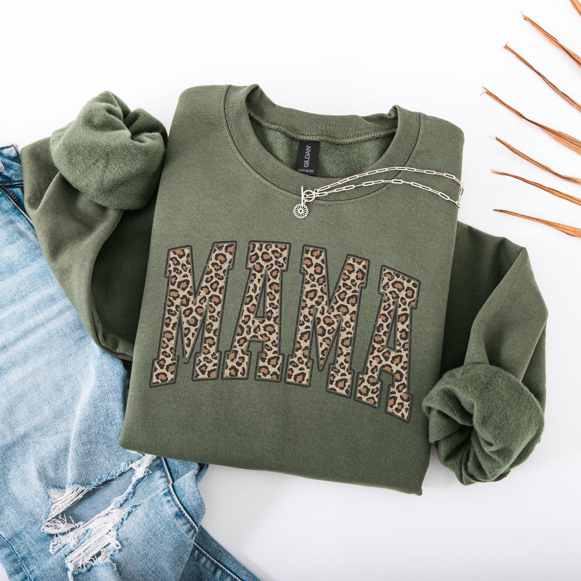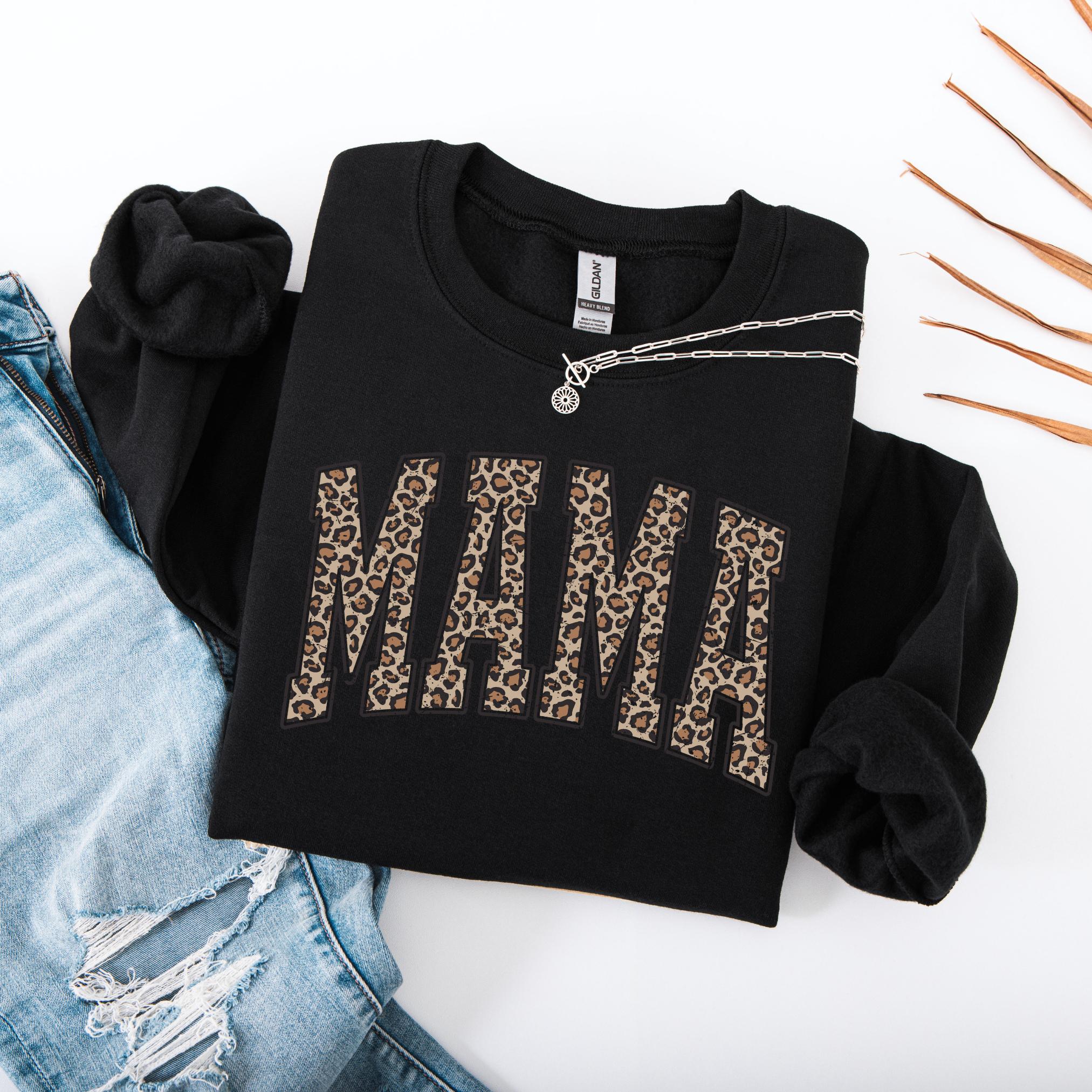 Show off your mama pride in style with this Leopard Print “MAMA” Sweatshirt. Featuring bold varsity-style block letters filled with a chic leopard pattern, this cozy crewneck is the perfect mix of trendy and heartfelt.