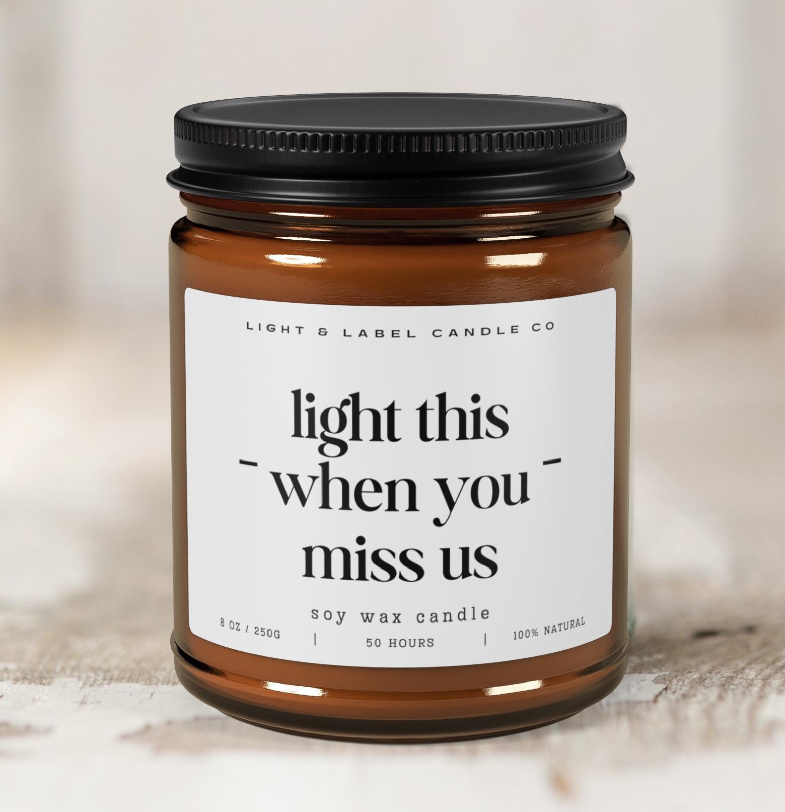 Light This When You Miss Us Candle, Moving Gift, Farewell Candle, Long Distance Gift, Goodbye Gift, Boyfriend Girlfriend Gift - Amber Candle