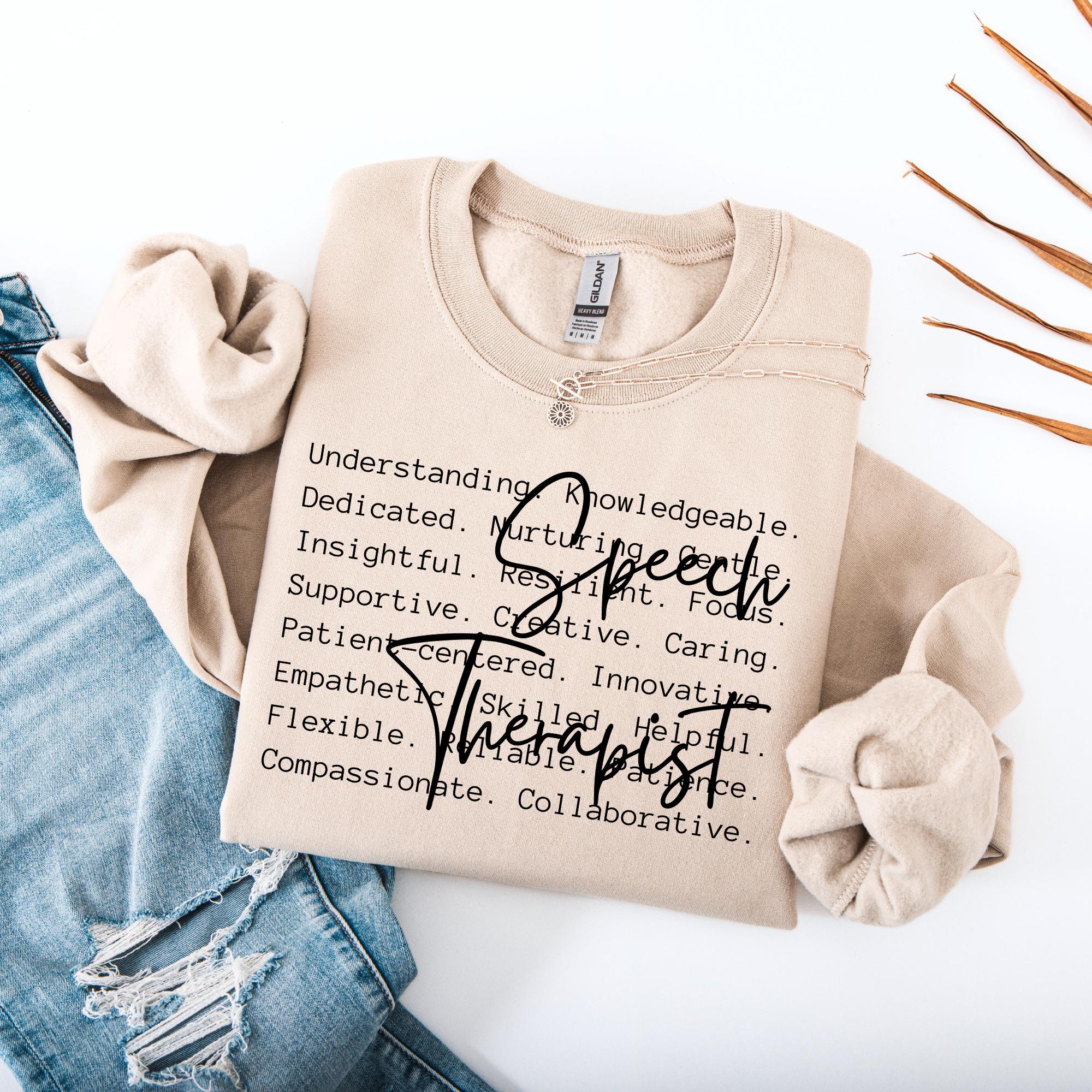 Perfect for SLPs, speech-language pathology students, or anyone wanting to show appreciation for this vital profession, this sweatshirt is both meaningful and stylish. Whether you’re wearing it to work, lounging at home, or gifting it to your favorite therapist, it’s a thoughtful way to honor their hard work and compassion.