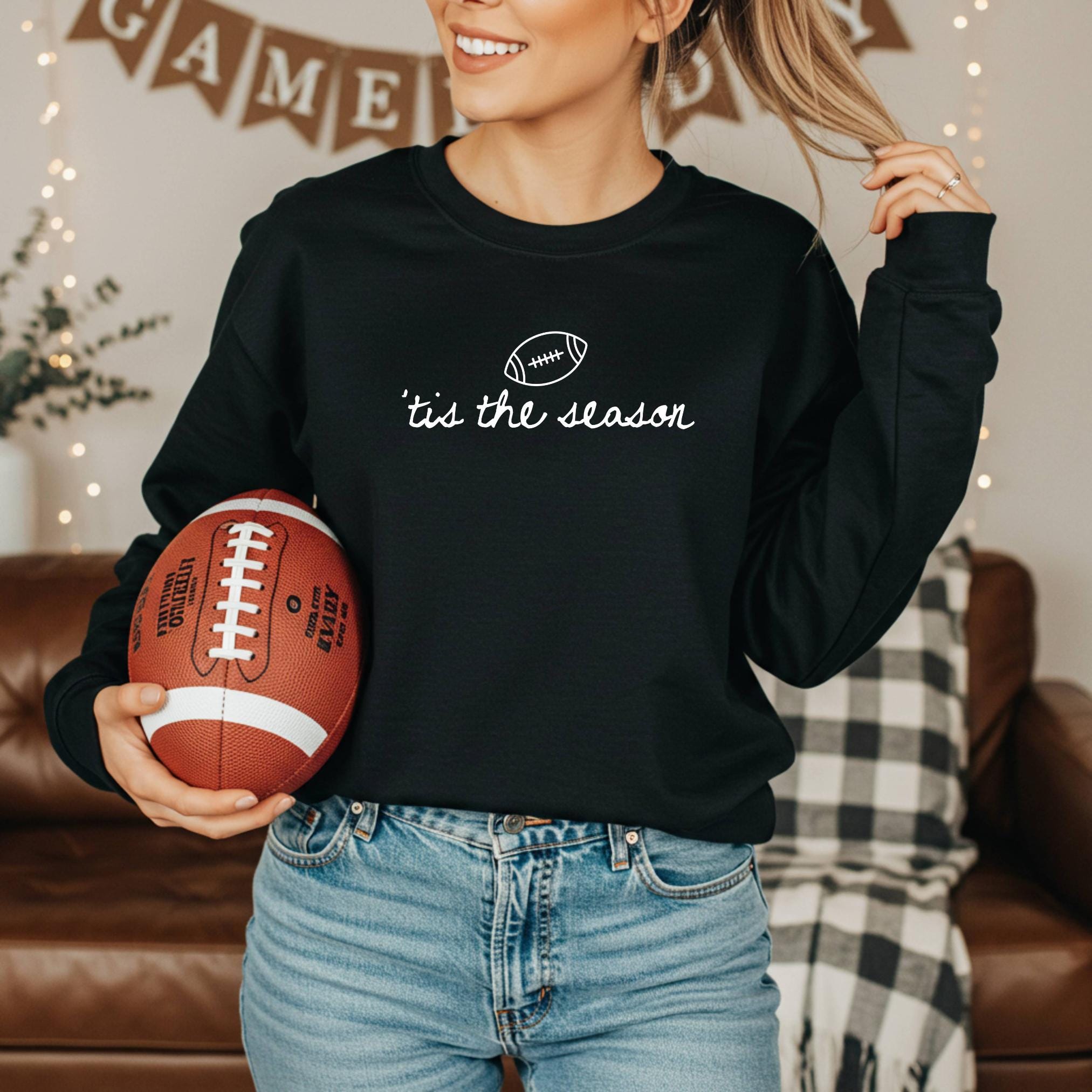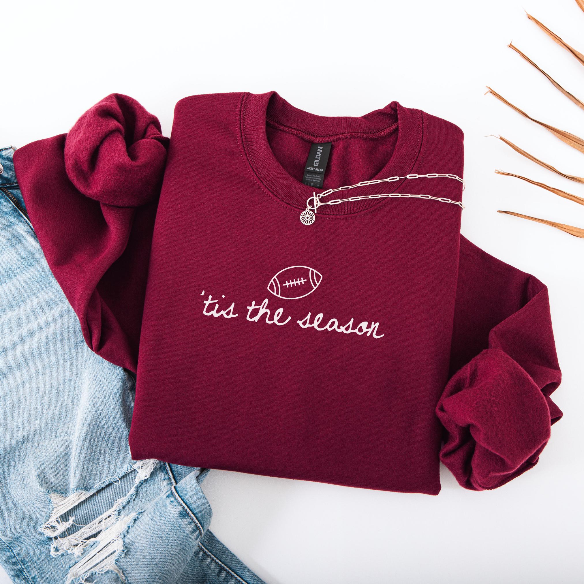 Celebrate football season in style with our ’Tis The Season sweatshirt — a cozy must-have for game days, tailgates, or just lounging on the couch cheering for your favorite team. Featuring a clean minimalist script and football graphic, this chocolate brown crewneck gives off all the fall feels while keeping you warm and comfortable.