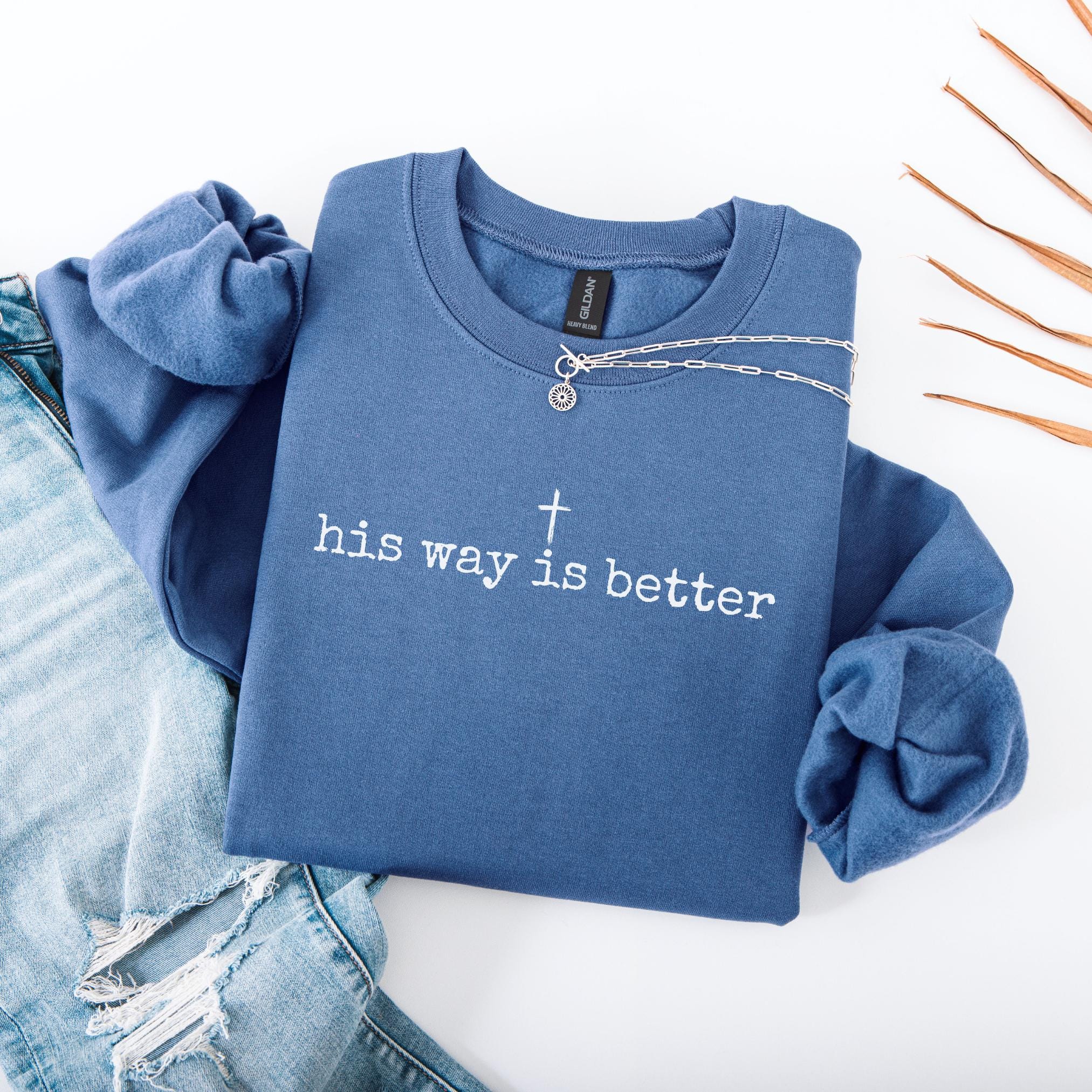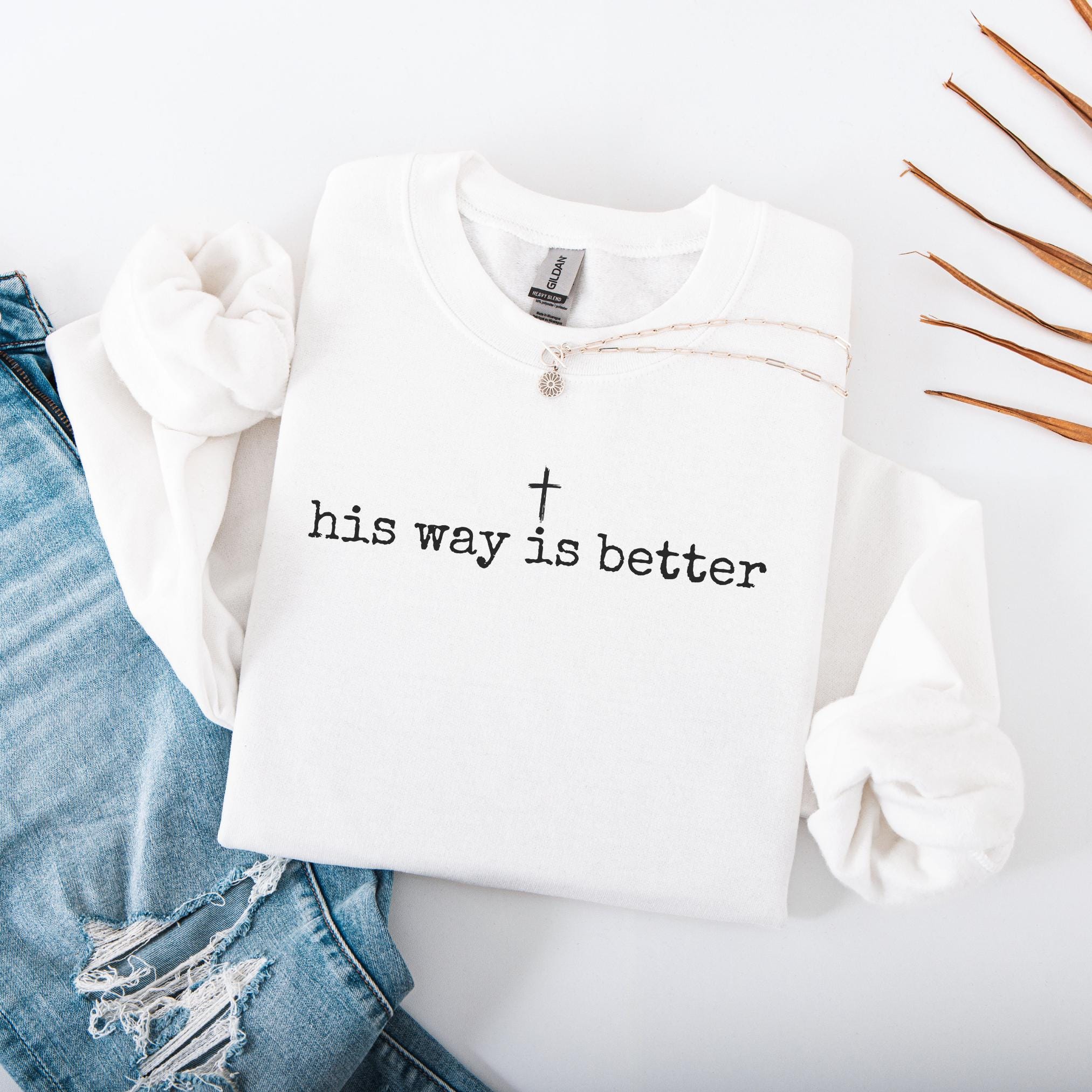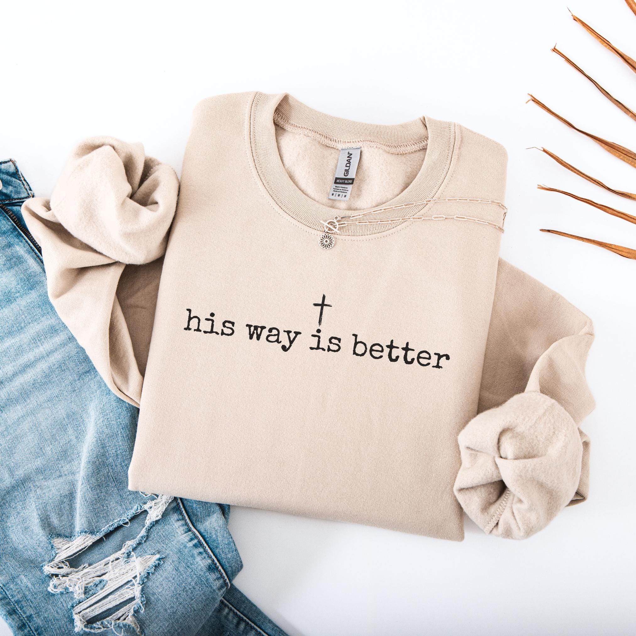 Wrap yourself in comfort and faith with our His Way Is Better sweatshirt. This minimalist design features a simple cross paired with an uplifting reminder that His plan always prevails. Perfect for cozy days, Sunday mornings, or coffee dates, this soft fleece sweatshirt brings both warmth and inspiration wherever you go.