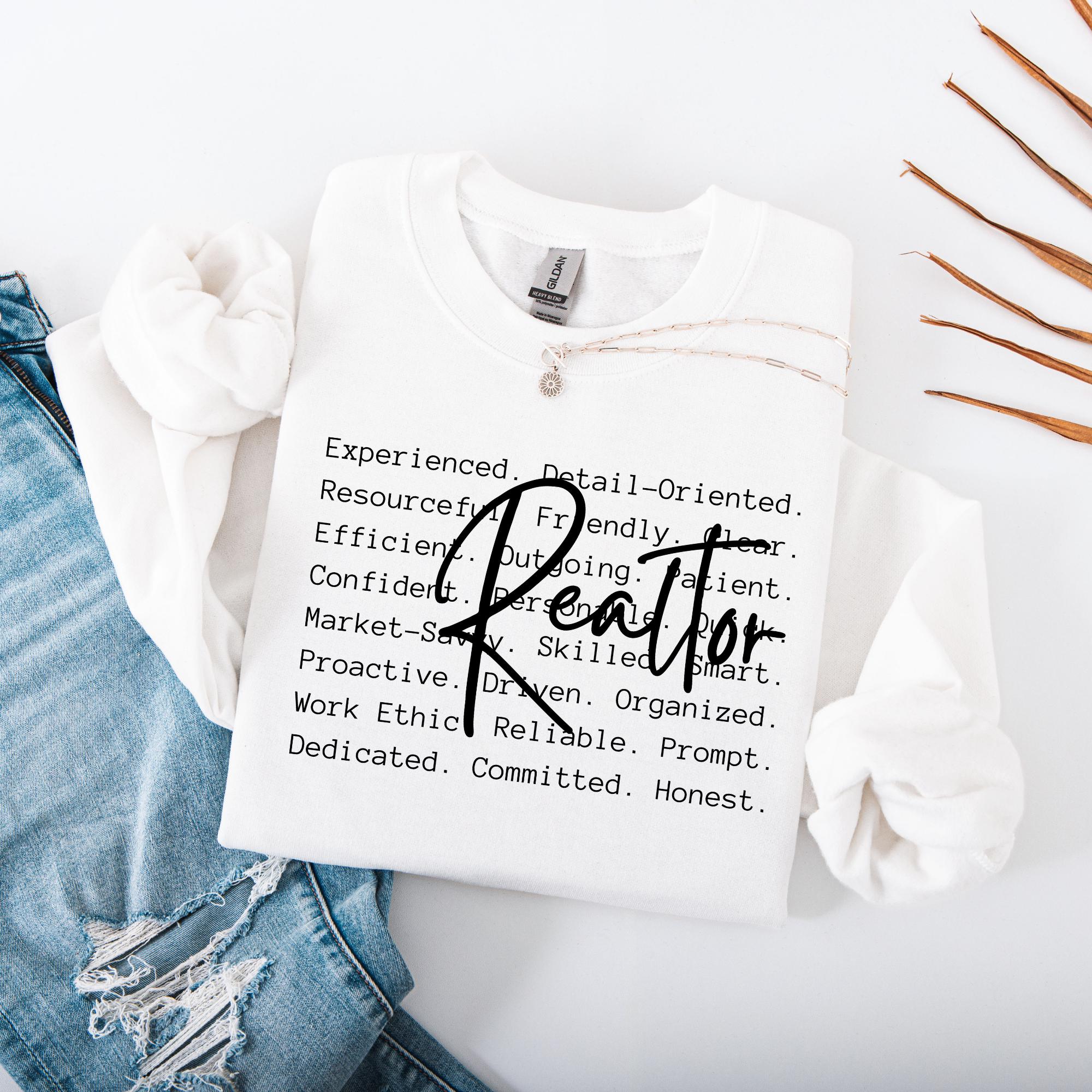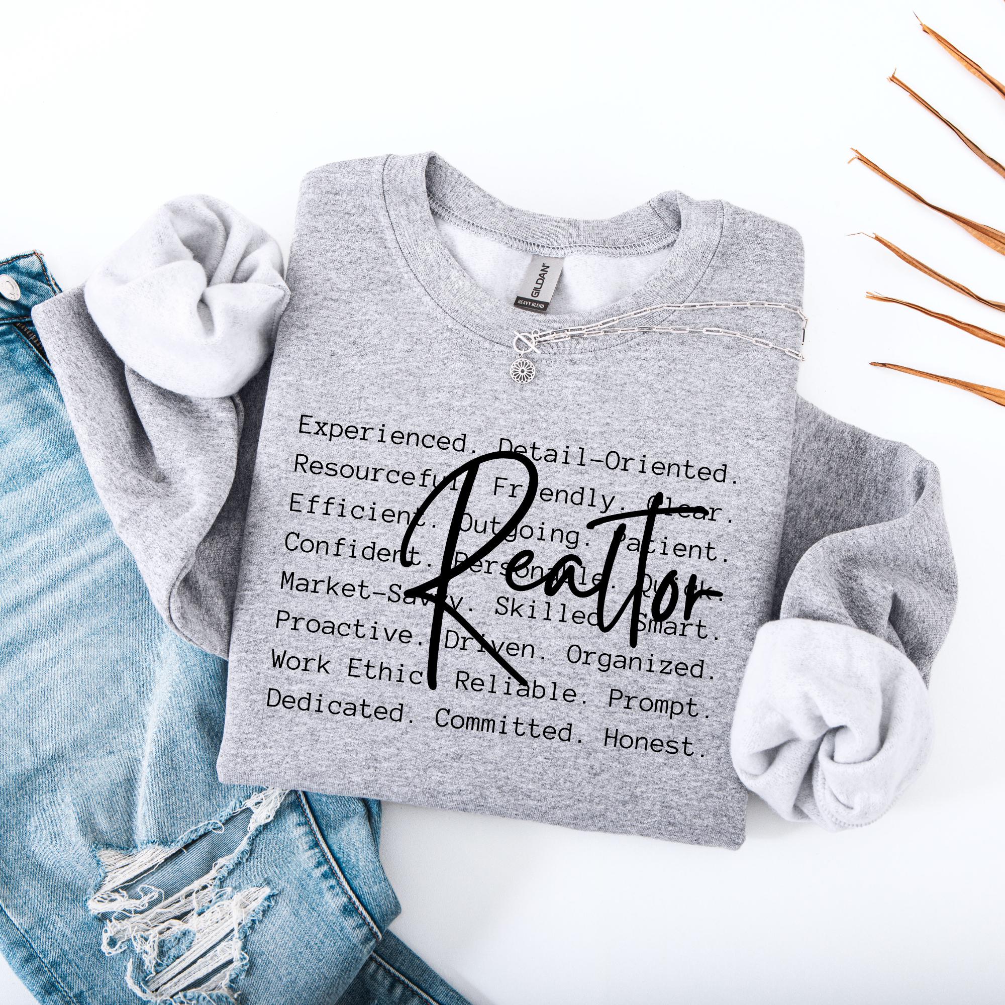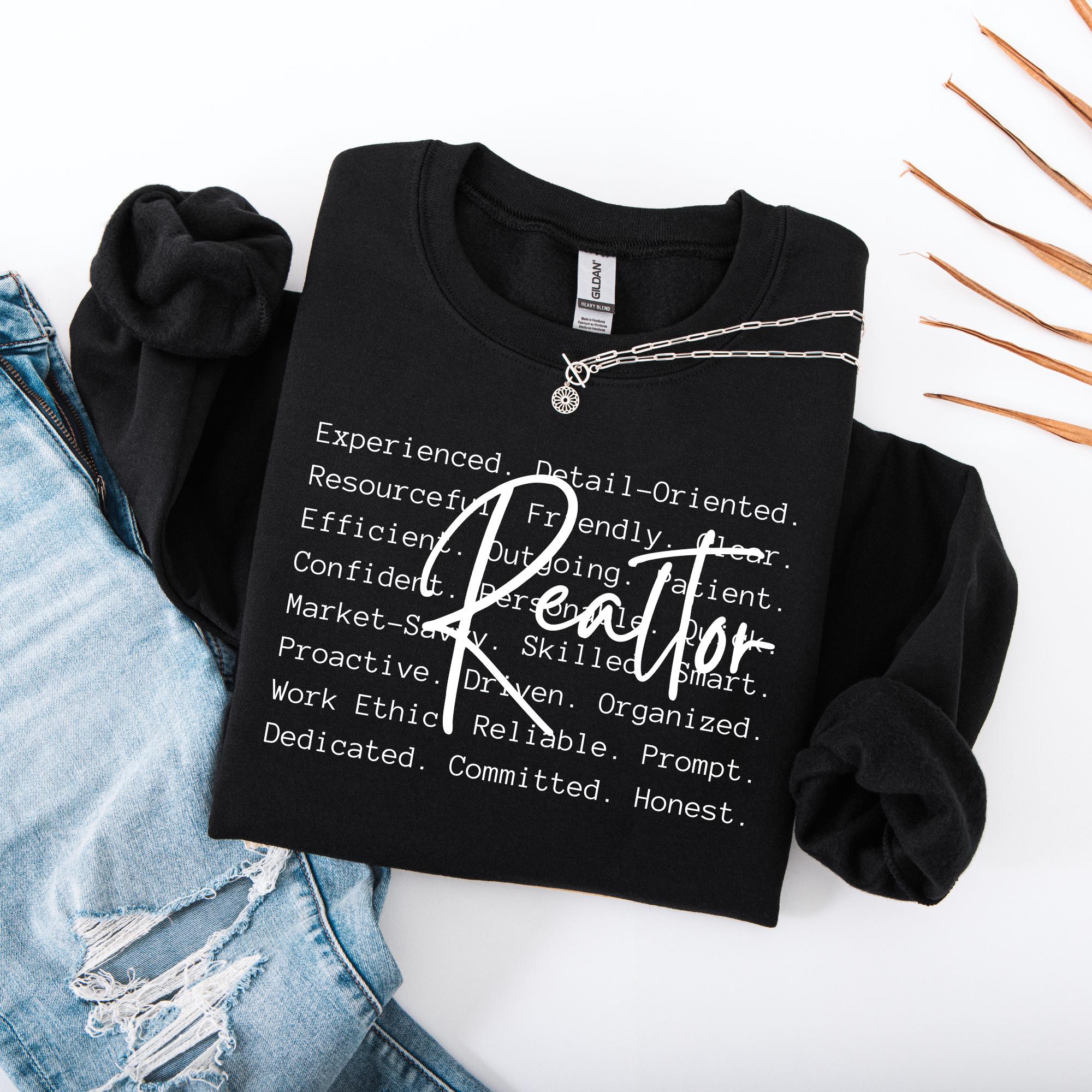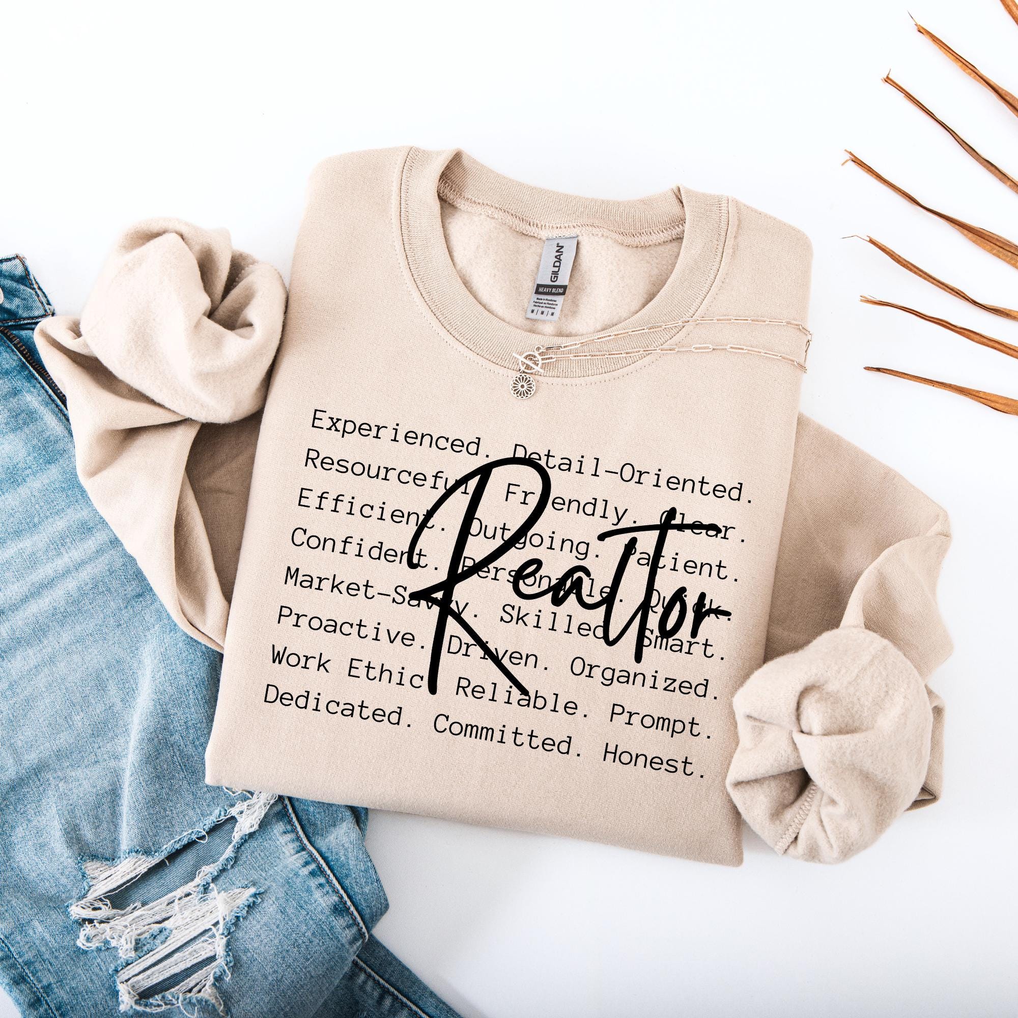 Celebrate your real estate hustle in style with this cozy Realtor Definition Sweatshirt! Perfect for open houses, closings, or those well-earned coffee runs, this design highlights all the amazing qualities that make a realtor shine — experienced, confident, resourceful, and driven. The modern minimalist text design with the bold “Realtor” overlay adds a chic, professional touch that pairs perfectly with jeans or leggings.
